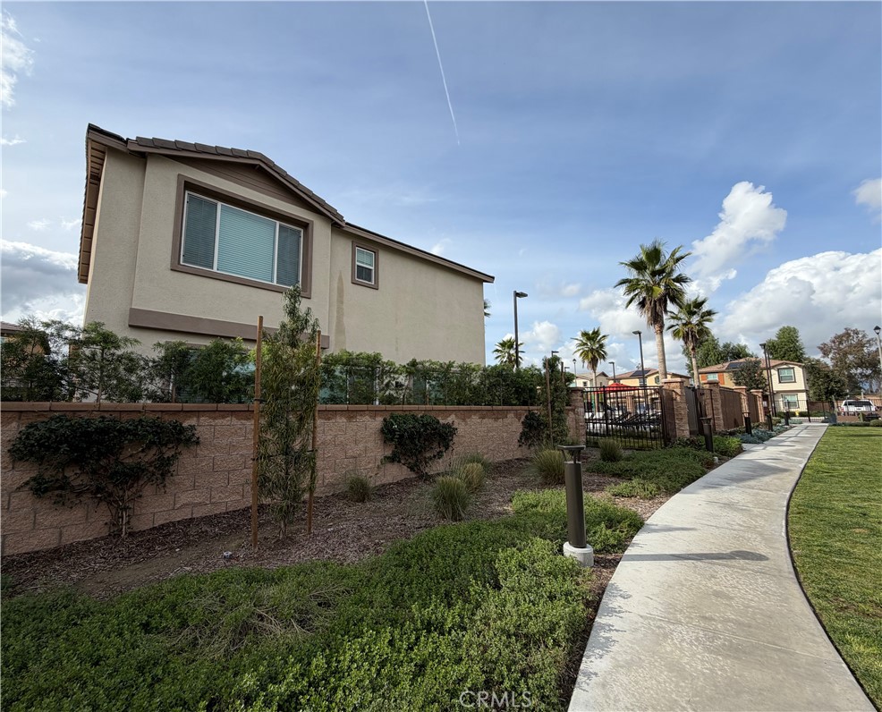 Beautifully Newer Built 3-bedroom, 2.5-bath home offering 1,684 sqft of bright & inviting living space. Located close to the HOA clubhouse, pool, and picnic area, this home combines comfort, convenience, and community. Enjoy a spacious two-bay garage with storage racks and owned solar panels for energy efficiency. Inside, the home features fresh paint, chrome fixtures throughout, and an open floor plan ideal for modern living. The chef’s kitchen showcases a large island, countertops with a granite backsplash, plenty of cabinetry with pantry, and stainless-steel appliances—including a gas range, dishwasher, and micro-hood. All bedrooms are located upstairs, including a primary suite with a walk-in closet and private walk-in closet. Bathrooms include high-efficiency toilets & dual sinks. Additional included amenities feature a refrigerator, washer, dryer, reverse-osmosis (RO) drinking system, and water softener ~ providing true move-in-ready convenience. Situated just minutes from major freeways (SR-60 and I-15), whether commuting to work, exploring the mountains, or heading to coast. (Lives like a SFR, property is zoned as the detached condo.)