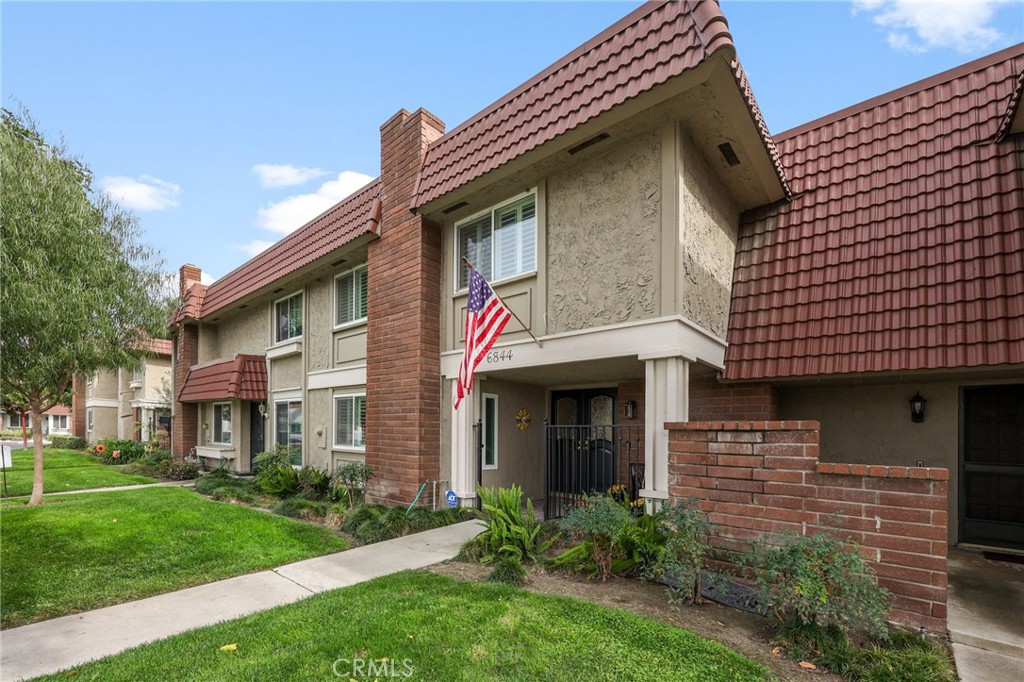 Breathe deeply and enjoy the peace of owning a home in a great neighborhood with top schools and friendly neighbors. Your private front patio in a herringbone brick pattern & an anthracite wrought-iron gate is just the beginning. Cypress Village offers manicured greenbelts, mature shade trees, and this home enjoys added privacy of a decorative pressed-glass window in lieu of the standard Arcadian slider. Matching pressed-glass double doors open to a sunken living room or to the open kitchen/dining area. Wood-laminate flooring flows throughout the home for easy care. The living room features an updated gas-starter fireplace w/ faux travertine finishes & veined marble accents, plantation shutters, buttery colored walls anchored w/ white crown molding and dimmable recessed lighting on smoothly scraped ceilings. An ADT wired security system with talking sensors adds peace of mind at all entry points. The open kitchen includes custom soft-close cabinetry, a roll-up cover appliance nook, black granite counters w/ European edges, stainless appliances (5-burner stove, double-door fridge, microwave) a bespoke pantry niched under-stair storage w/ a frosted-glass door, majolica-inspired tile backsplash behind the stove & a swing-arm pot filler and dimmable pendant lighting over the island. The suspended orb chandelier on a rheostat creates the mood for casual dining with friends with a space that will easily accommodate a table for 8. The lower-level powder room features a suspended sea glass sink nested in decorative wrought iron holder w/ rubbed-bronze hardware. Upstairs, the oversized primary suite fits a CA King & room for a sitting area in front of the painted-brick fireplace transforming this room into a private sanctuary; in soft, cool robin egg blue tones & a papered accent wall. Ensuite bathroom w/ walk in shower & to keep things tidy a walk-in closet with built in shelving. One bedroom has a custom built-in desk ideal for work or study; and the third bedroom has visually expansive mirrored closet doors. The 2nd bath features a heavy-gauge glass shower on barn-door-style tracking and a celadon-grey vanity with shaker style pulls & a quartz top. Laundry is conveniently located upstairs behind closed doors along with the tankless water heater. The back patio is shaded by mature ivy and feels like an Italian villa. Even the dog will feel at home with their own spot under the stairs. It comes w/ a detached 2-car garage for full-sized vehicles plus storage.