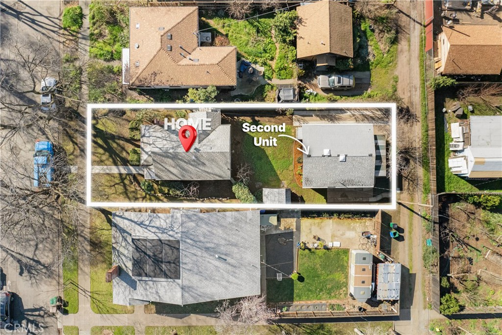 What a gem! Located in the heart of downtown Chico, this charming bungalow offers an incredible opportunity with two homes on one lot, just minutes from Bidwell Park, downtown markets and restaurants, and Chico State. The front home features 2 bedrooms and 1 bathroom and is filled with classic character. Wood flooring runs through most of the living spaces, complemented by beautiful wood-cased windows that keep the home light and bright. The cozy living room centers around a charming white rock fireplace—perfect for relaxing evenings. Just off the living room is an adorable, bright white kitchen with ample cabinet space and a sweet dining nook. A basement provides excellent additional storage. Between the two homes, you’ll find a spacious shared yard with a storage shed. The back unit is a darling 1 bedroom, 1 bathroom home with its own inviting front patio. Inside, natural light pours into the space, highlighting the high ceilings and a spacious living room complete with a charming window seat. The living area flows seamlessly into the kitchen, which features a large picture window and a peninsula countertop with seating. This unit has fresh white interior paint, dual-pane windows, private washer and dryer closet and its own private driveway with alley access. Whether you’re looking for a fantastic investment opportunity or a place to live in one unit and rent the other, this downtown Chico property offers flexibility, charm, and an unbeatable location.