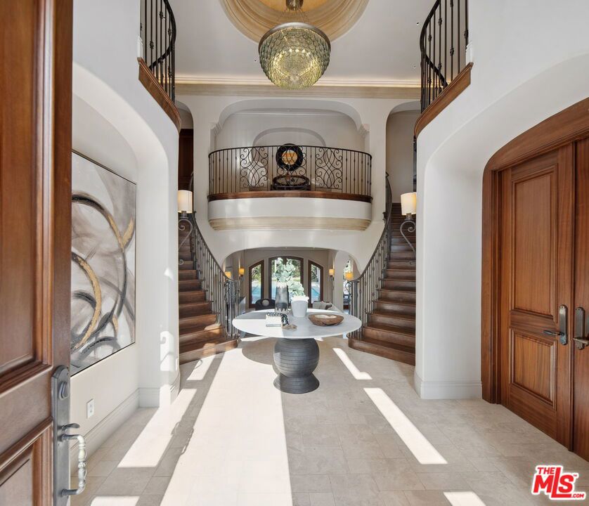 Nestled on a coveted 16,008 sq. ft. lot in one of North Kentwood’s most desirable neighborhoods, this extraordinary Mediterranean estate blends timeless elegance with modern luxury. Offering 8,733 sq. ft. of meticulously crafted living space and a 1,166 sq. ft casita, this private retreat showcases unparalleled craftsmanship and high-end finishes, including Italian marble, limestone, and natural woods, in a thoughtfully designed layout that exudes sophistication and warmth. The main residence features five bedrooms, seven bathrooms, and two half baths, complemented by a two-bedroom, one-bath guest house an ideal haven for multi-generational living or stylish guest accommodations. Both homes are fully equipped smart homes, powered by advanced Crestron technology, allowing seamless control of lighting, climate, security, and entertainment systems. Constructed with flame-retardant lumber, a robust water-softening and filtration system, solar panels, and a hard-wired security system with geo-fencing, the estate offers state-of-the-art innovation with enduring quality. Enter through the grand foyer, where soaring ceilings and a sweeping curved double staircase immediately set a tone of opulence. The open yet well-defined floor plan flows effortlessly between formal and informal living spaces. A stately formal living room with a gas fireplace and mahogany doors opens to the lush backyard, while the sophisticated formal dining room offers a perfect setting for elegant gatherings. The family room, featuring a striking coffered ceiling, pocket doors, and an outdoor fireplace, invites relaxation and seamlessly merges indoor and outdoor living. The heart of the home is an expansive kitchen equipped with high-end appliances, a La Cornue stove, a spacious marble island, and a separate chef’s kitchen for effortless entertaining. A full-service wet bar enhances the home’s hosting capabilities. The main level also includes a private office with coffered ceilings and French doors opening to the front loggia and garden, a hand-carved limestone staircase spiraling around a three-story touret with niche lighting, an adjacent powder room, and an elevator for added convenience. Designed for both grand entertaining and serene retreats, the backyard is a true sanctuary, featuring a large salt-water pool and spa, two outdoor fireplaces, and a tranquil fountain surrounded by lush, mature landscaping that offers exceptional privacy. Upstairs, the primary suite is a luxurious escape, complete with a private balcony offering sweeping views, a cozy fireplace, a spa-inspired ensuite bath with heated floors, a soaking tub, a separate shower, dual vanities, and a refrigerated bar area. Expansive dual closets provide impeccable storage. Four additional en-suite bedrooms ensure comfort and privacy for family and guests, while a conveniently located laundry room adds everyday ease. A first-floor en-suite bedroom, with a refrigerated minibar and French doors to the garden, offers flexibility and accessibility. Entertainment and lifestyle amenities abound, including a temperature-controlled wine cellar for collectors, a private state-of-the-art movie theater with custom seating, an adjacent full-service wet bar and snack center with microwave and refrigerated drawers, a full salon with hair and nail stations, a dedicated gift wrapping, hobby, and homework center, plus a large gym for wellness enthusiasts. The separate guest house offers fully independent living with a custom kitchen, washer/dryer, two large bedrooms, a full bath, and a separate outdoor pool bath, ensuring extended family or guests enjoy complete comfort and privacy. A four-car garage and a gated driveway provide secure parking for six or more vehicles, adding everyday practicality to the estate’s grand presence. This rare offering presents a unique opportunity to own an estate that flawlessly blends luxury, functionality, and exquisite design all within the vibrant heart of Westchester.