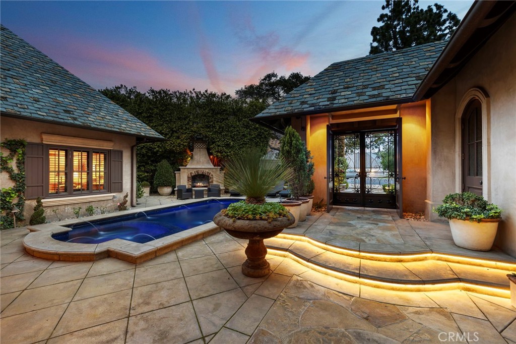 Location, Location, LOCATION! Overlooking the soon-to-be completed, new 18th fairway of Big Canyon Country Club, this is a rare opportunity to purchase a home on a peaceful cul-de-sac with over 162 feet of golf course frontage on the coveted sunny side of the course. Remodeled extensively in 2009 the timeless French Country Manor-inspired residence features a beautiful slate roof, multiple outdoor entertaining areas, and sun-dappled garden. A privately gated entry opens to a sparkling pool and spa and two outdoor fireplaces. Inside, stunning hardwood floors throughout lead you to a main level primary suite featuring a romantic fireplace and dual bathrooms, dual dressing rooms and closets, a soaking tub and shared shower. A sunken living room showcases a bar, a disappearing television that vanishes when not in use, fireplace and ample room for entertaining and opens to the formal dining room that easily seats ten guests. The kitchen is equipped with a six burner range with griddle and pot filler, a SubZero refrigerator, microwave and plenty of counter space for the family chef. The main level also includes a family room with fireplace and built-in desk, powder room, laundry/craft room, wine cellar, office and a guest suite with a private bathroom. Upstairs you’ll find two additional bedroom suites and a spacious bonus room with a dedicated bathroom and shower. Don’t forget to visit the spacious, secret attic space–perfect for storage. A three car garage houses your vehicles with three additional spaces in the driveway. Best of all, you will enjoy views that act as a living painting of the golf course and two lakes, twinkling lights from the clubhouse and Fashion Island and front-row seats to Big Canyon’s spectacular 4th of July fireworks.