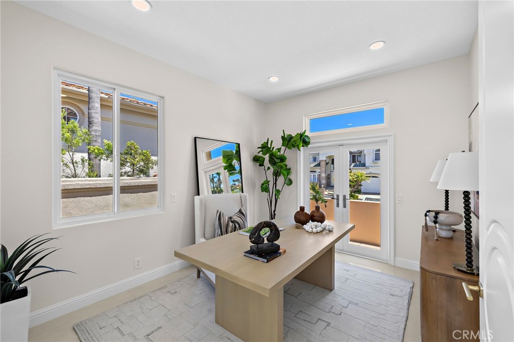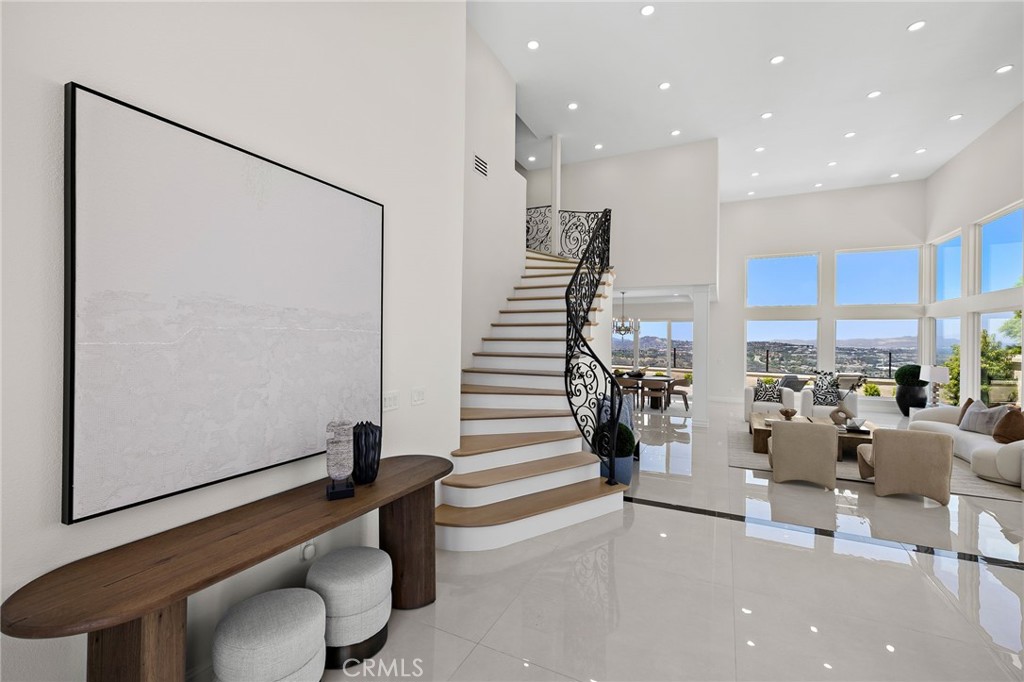 Refined Coastal Living in Guard-Gated Palmilla, Laguna Niguel Commanding a premier front-row position in the prestigious guard-gated enclave of Palmilla, this newly reimagined semi-custom estate offers a rare opportunity to experience elevated living in the coveted heights of Niguel Summit. Encompassing approximately 4,431 square feet on a generous 8,500 square foot lot, this distinguished residence features 4 ensuite bedrooms, 4.5 baths, and sweeping panoramic views of Saddleback Mountain, enhanced by cool ocean breezes from nearby Laguna Beach. An impressive arrival begins at the 12-foot custom iron entry doors, opening into a voluminous interior defined by 18-foot ceilings, Spanish tile flooring, and dramatic floor-to-ceiling windows that flood the home with natural light while framing tranquil city and mountain vistas. The flowing floor plan connects formal and casual spaces with effortless elegance. Anchoring the main living area is a contemporary smart fireplace, seamlessly adjoining a designer chef’s kitchen appointed with bespoke Italian cabinetry, Taj Mahal quartz countertops, Thermador appliances, and Italian lighting. Wellness and function converge at the sink with an instant hot water tap and reverse osmosis filtration system. A full ensuite bedroom on the main level offers ideal accommodations for guests or multi-generational living. French doors invite you outdoors to a private and professionally landscaped backyard, thoughtfully enhanced with new pavers and abundant space for alfresco dining and entertaining. Ascending a staircase finished in custom redwood, the upper level reveals three additional ensuite bedrooms and a versatile bonus room, ideal as a home office, media lounge, or fitness studio. The expansive primary suite captures dazzling city light views and features a serene sitting area with a dual-sided smart fireplace, shared with the spa-inspired primary bath—complete with heated porcelain floors, Italian cabinetry, designer lighting, and a custom built-in wardrobe. Additional enhancements include new HVAC systems, updated plumbing and electrical, dual-pane energy-efficient windows, epoxy-coated garage flooring, and smooth stucco exterior finish. Situated minutes from renowned beaches, scenic trails, top-tier schools, and upscale dining and boutiques, this exceptional residence combines the finest in luxury design, modern comfort, and coastal California living.