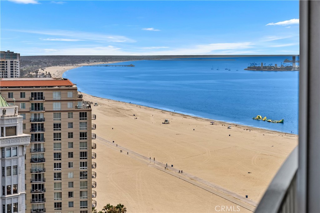 Enjoy stunning cityscape and partial ocean views from this beautifully renovated condo in the iconic International Tower on the Long Beach waterfront. This exceptional one-bedroom, two-bath unit offers floor-to-ceiling windows framing panoramic views, perfect for entertaining or relaxing in style. Picture dining al fresco on your private balcony as the city lights sparkle below, or watching the Long Beach Pride Parade right from your home. The interior features carpeted flooring, multiple closets for ample storage, and a convenient stackable washer and dryer. One assigned parking space is included. Located just moments from the beach, Shoreline Village, the marina, and vibrant downtown Long Beach, this home offers the perfect blend of luxury and convenience. Residents also enjoy premium amenities including a heated pool, fitness center, and 24-hour security and on-site management. This is a rare opportunity to live in one of the city’s most desirable high-rises.