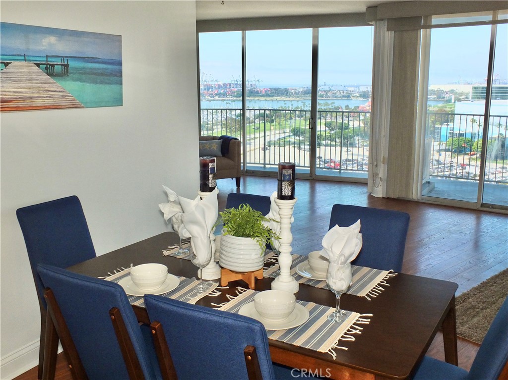 With the 2028 Olympics coming in 2028 you will not want to miss the opportunity to live near the center of the action! As we welcome you to the International Tower where unit 2008 has it all; luxury and views with a wrap round balcony affording views from Catalina to Palos Verdes to downtown Los Angeles to the mountain peaks, plus evening city lights over the harbor and bridges. This 3-bedroom unit has been upgraded throughout, currently modified with one bedroom opened up to a larger living area. Both bathrooms have been updated, extra closet space was added, as well as wood floors. Inside laundry. This is one of the rare units that has split unit heating and air conditioning throughout. Plus this 20th floor home has the extra luxury of 10 inch higher ceilings. Includes two parking spaces and a deeded storage unit in the controlled access parking garage. The International Tower is an iconic full-service luxury complex that features a large lobby with ocean views, 24-hr security and concierge, heated outdoor pool, state of the art fitness center, conference and meeting rooms, a secure mail room with package lockers and monthly activities to encourage a sense of community. The HOA includes basic frontier cable and internet. Small pets are welcome, the staff includes on-site manager and assistant manager and maintenance staff.