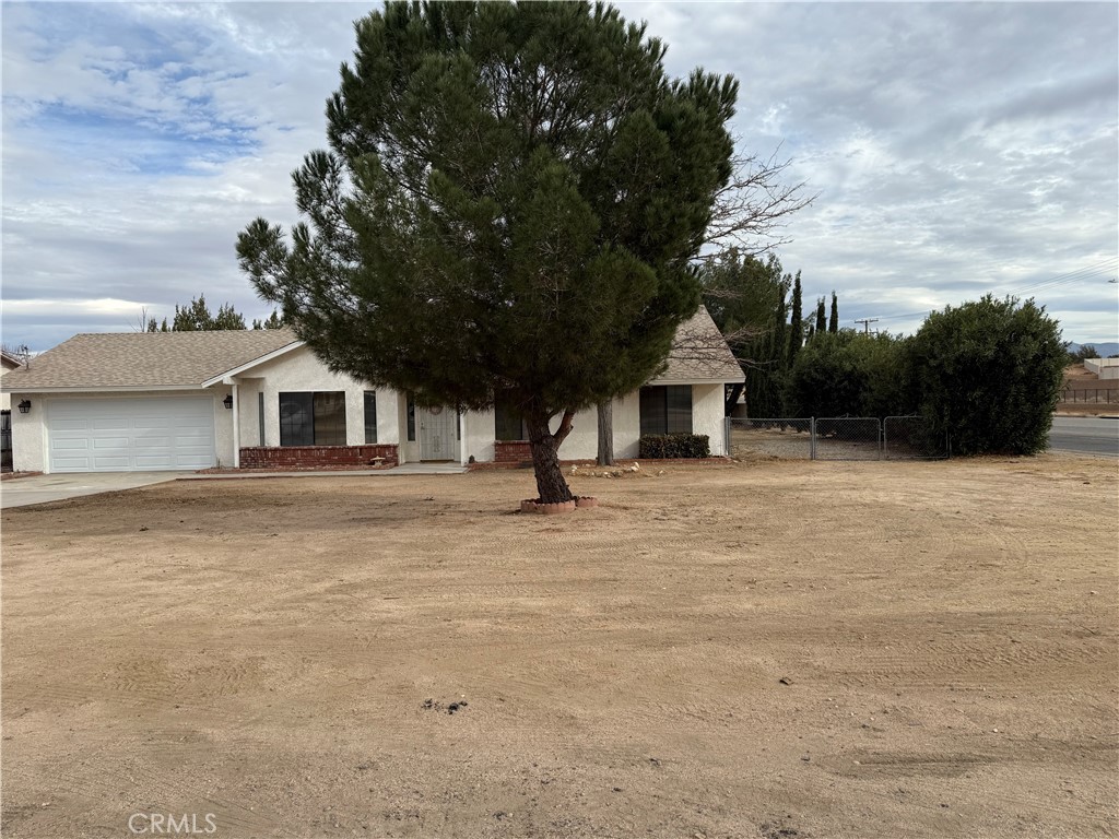Hesperia 3 bedroom 2 baths, new inside paint, new laminated waterproof floors, new stainless steel appliances stove, dishwasher, microwave, pantry, family room includes a wood burning stove, dining area combine with living room, fans in the bedrooms and family room, New Roof , new garage door and garage door opener, new blinds, covered patio, next to ranchero close to schools, elementary and middle school, pine trees fenced block and chain link fence, frwy, mature trees