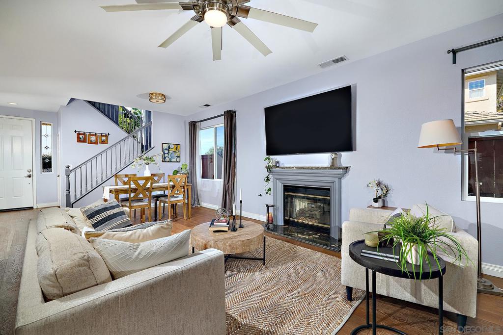 Coastal Carlsbad living at its finest! Just steps from the pristine sands of Ponto Beach, this stunning OCEAN VIEW, detached home sits perfectly in the exclusive gated community of Vistamar. Thoughtfully upgraded, this 2BR+Optional/2.5BA offers the perfect blend of comfort, style, and seamless indoor-outdoor living. Inside, the home showcases beautiful wood flooring, fresh interior paint, and new carpeting. The open concept living/dining space features a cozy gas fireplace, ceiling fan, and sliders to the private patio. The upgraded kitchen features newer cabinetry with glass doors and striking Cosmos granite countertops, tile backsplash, stainless steel appliances & range hood, farmhouse sink, and large center island with ample storage. Upstairs, the spacious primary suite features ceiling fan, large walk-in closet with built-ins, and spa-like bath with large walk-in shower with rainfall showerhead and double vanity. The lounge/office area in the primary retreat could be easily converted to a third bedroom! An additional bedroom and bath complete the upstairs. Step outside to the private, lushly landscaped patio retreat—complete with a fire pit, lounge area with pergola, redwood plant wall, and an outdoor shower with warm water, perfect after a morning surf. The two-car garage includes added storage racks. RV storage available. Residents of Vistamar enjoy resort-style amenities including a community pool and spa, plus tennis, basketball, and volleyball courts—all just moments from the sand!