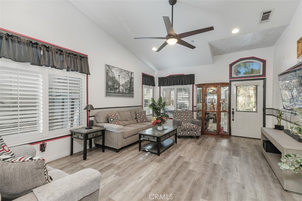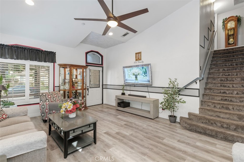 Welcome to this beautifully upgraded 4-bedroom, 3-bath home located on a quiet cul-de-sac! This spacious property offers a flexible floorplan with a full bedroom and bathroom on the main floor, perfect for guests or multi-generational living. Step inside to find soaring ceilings, custom flooring, upgraded paint, and dual-pane windows that provide abundant natural light. The formal living and dining rooms offer great space for entertaining, while the open-concept kitchen and family room create a comfortable great room feel. The kitchen features a large center island, modern cabinets, premium countertops, and a stylish backsplash—plus ample storage and a walk-in pantry. Upstairs, you’ll find two spacious bedrooms and a luxurious primary suite with vaulted ceilings and a beautifully upgraded en-suite bathroom, complete with a modern vanity and walk-in shower. Additional highlights include: Whole house fan Newer AC unit Central vacuum system Water softener Low-maintenance backyard with artificial turf Custom patio flooring and covered enclosure Built-in outdoor speakers This home combines comfort, convenience, and energy efficiency—all in a fantastic location. Don’t miss your chance to see it!