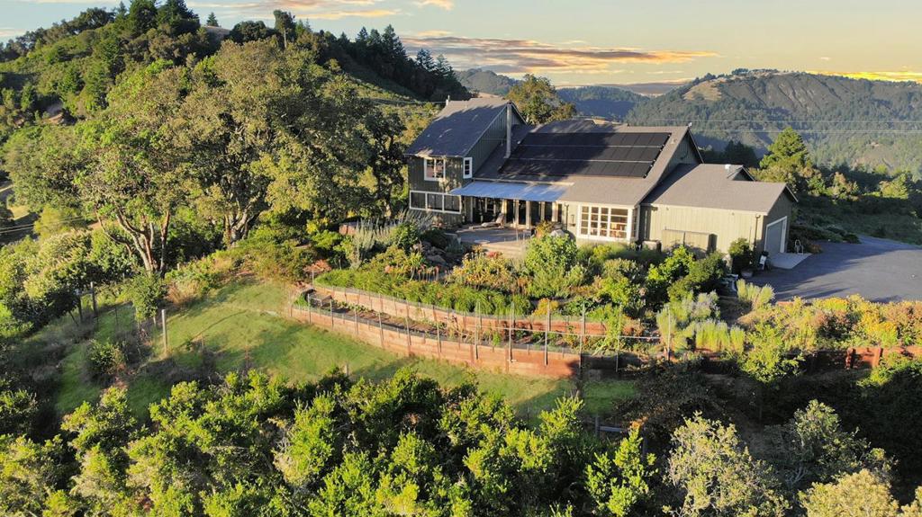 With panoramic views of the Pacific Ocean, Mindego Hill, and Skyline Ridge, this hilltop retreat on upper Alpine Road offers a tranquil front-row seat to some of the Bay Area’s most stunning scenery. Sunrises and sunsets light the ridges and ocean, while fog drifts through the valleys below. Designed by D.P. Finnigan, the home features clean lines, tall windows, hardwood floors, solid wood cabinetry, and seamless indoor-outdoor flow with broad patios. The open layout includes spacious living and family rooms, a large kitchen and dining area, and a generous primary suite all with striking views. Quality craftsmanship, attention to detail, and creative design make it perfect for relaxing or entertaining. Solar power, Tesla Powerwalls, a heat pump with gas furnace, generator, and defensible space offer comfort and security. A hot tub, pond, native landscaping, citrus trees, and orchard add charm. Enjoy nearby Russian Ridge, Portola Redwoods, and Sam McDonald Parks. San Gregorio Beach is just 25 minutes away; Page Mill/280 (35), Palo Alto (40), Saratoga (30).