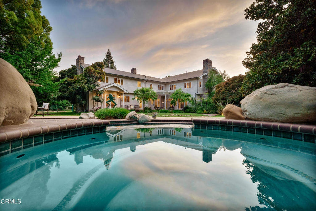 RemarksSpectacular 2024 remodel in prestigious Persimmon Hills Estate. A rare opportunity to acquire a gated 5.33-acre legacy property offering approximately 6,000 sq ft of refined living space, complemented by an exceptional 1,800 sq ft six-car garage and workshop. Tucked discreetly within the heart of downtown Ojai, the estate delivers an increasingly rare combination of true privacy, established landscaping, and immediate access to town amenities.The residence presents a timeless modern farmhouse aesthetic, thoughtfully curated by leading designers with an emphasis on enduring materials and architectural integrity. Features include Italian appliances, Brazilian stone, buck-skinned wood accents, marble slab showers, marble and travertine flooring, Douglas fir beams and detailing, cedar siding, and a distinctive all-copper roof, a testament to both craftsmanship and longevity. Smart-home technology, gated entry, and a secure private community provide comfort, discretion, and peace of mind.Designed to accommodate both elegant entertaining and everyday retreat, the home offers two primary suites, four fireplaces, a library, media room, living and family rooms, a wine cellar with tasting room, and a dedicated massage room. The expansive garage and workshop allow flexibility for collectors, hobbies, or future adaptation.Completed in 2026, a separate guest quarters or artist studio is privately positioned to capture elevated views, offering a secluded retreat ideal for guests, creative pursuits, or quiet work.The park-like grounds are supported by a private well and include a pool and spa, bocce court, volleyball court, multiple gathering areas and gazebos, a family orchard, and a nine-hole putting green with driving range. Extensive custom windows integrate the landscape into daily living, framing sweeping views of Topa Topa and Black Mountain.A rare and enduring Ojai estate offering privacy, craftsmanship, and location without compromise.