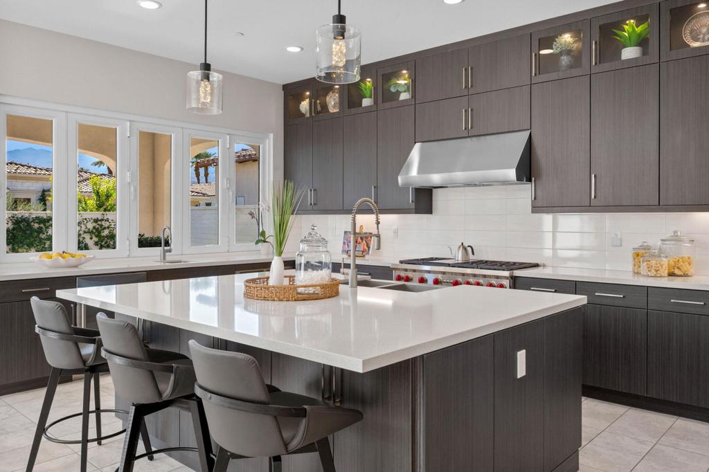 **Welcome to The Province**, an exclusive gated enclave in the heart of Indian Wells, where modern desert living is elevated to its finest expression. This stunning **3-bedroom, 4-bathroom residence** showcases sophisticated design, premium finishes, and thoughtful craftsmanship throughout.Step inside to a **spacious open-concept floor plan** designed for effortless entertaining. The expansive great room flows seamlessly into the dining and living areas, enhanced by a stylish **wet bar with direct outdoor access**, creating a true indoor-outdoor lifestyle.The **gourmet kitchen** is a showpiece, featuring quartz countertops with designer tile backsplash, an oversized quartz island accented by custom pendant lighting, abundant cabinetry, and premium stainless steel appliances–including a **Wolf six-burner range, Sub-Zero refrigerator, Wine Cooler, Cove dishwashers**, walk-in pantry, and under-cabinet lighting–perfect for both the culinary enthusiast and the entertainer.The **primary suite** offers a private sanctuary with direct outdoor access, generous custom cabinetry, and a spa-inspired bath complete with a quartz double vanity, smart bidet, expansive tiled shower, and a luxurious soaking tub designed for ultimate relaxation. A custom-designed walk-in closet adds both elegance and functionality.An additional **flex room ** provides versatility for a home office, media room, or den. Two beautifully appointed guest bedrooms each feature their own full bathrooms, offering comfort and privacy for family and guests alike.Professionally decorated with a modern, refined aesthetic, the home reflects exceptional pride of ownership throughout.Outside, your **private south-facing desert oasis** awaits. Enjoy year-round sunshine with a sparkling **saltwater pool and spa**, cascading waterfall, fire pit, and **breathtaking mountain views**. A custom built-in BBQ creates the perfect setting for alfresco dining and entertaining under the stars.Additional upgrades include **owned solar panels, custom tile flooring, tankless water heater, dual-zone HVAC**, and an oversized garage with extensive storage.This exceptional residence offers the very best of **luxury desert living** with incredible south views of the mountains. As an Indian Wells resident, enjoy exclusive discounts on world-class golf and dining.A must-see opportunity in one of the desert’s most coveted communities.
