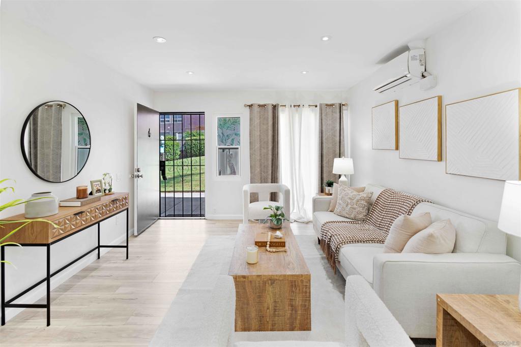 Step inside this beautifully updated 3-bedroom, 2-bath lower-level condo in the heart of Allied Gardens! Perfectly positioned just 5 minutes from Cowles Mountain and Mission Trails, this home offers the ultimate blend of comfort, convenience, and lifestyle. Step inside to find a thoughtfully designed floor plan featuring new paint, laminate flooring and a stylish peninsula with a waterfall edge quartz countertop, ideal for casual dining or entertaining. The in-unit washer and dryer, AC, and private patio add ease and functionality to everyday living. The community is a true retreat, surrounded by lush, well maintained greenery. Just steps from your front door, enjoy resort style amenities including a sparkling pool, relaxing spa, sauna, clubhouse, and gym. It’s also a pet-friendly community, making it the perfect fit for animal lovers who want both convenience and outdoor space. Beyond the complex, you’ll love the close proximity to top rated schools, shopping, dining, and endless outdoor activities. Whether you’re hiking scenic trails, grabbing a coffee nearby, or unwinding at home, this offers a lifestyle that balances relaxation with adventure!