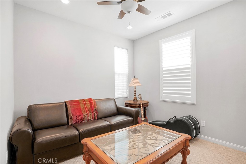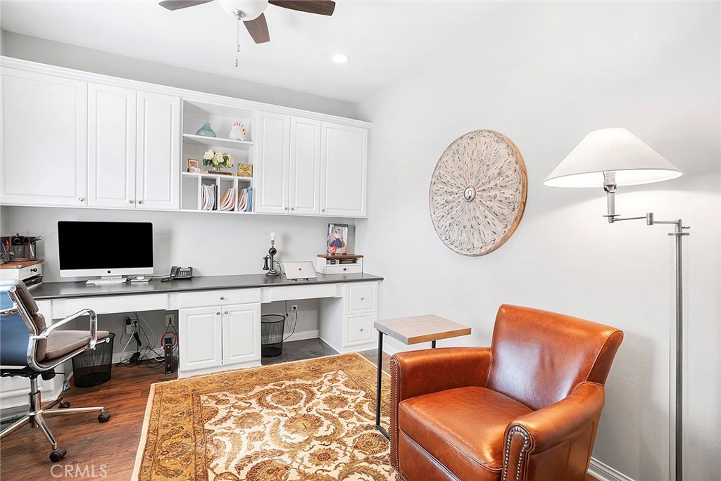 Beautiful Western Ranch Model detached single family home in the highly sought after 55 plus community of Auberge at Del Sur. The home has an additional room that can be use as a 3rd bedroom, office, or your choice. Open floor plan joining the kitchen, dining area and great room. The Kitchen boasts of a beautiful granite island & countertops, stainless steel appliances, Upgraded Kitchen BackSplash, Laminate Floors and plenty of European-style white thermofoil cabinetry and raised panel doors, Built-In Entertainment Center as well as built-in office Desk with Cabinets. This amazing home comes with the upgraded Covered Patio with automatic awning, ceiling fan w/ light, laundry room with a sink & side by side washer and dryer, pre-wired for solar panels, tankless water heater, Garage with Epoxy Flooring, low maintenance backyard with a relaxing water fountain, backyard fully paved, neutral interior paint, whole house fire sprinklers. A 2 car garage that offers storage cabinets and overhead storage racks. Auberge residents have full access to all of the Del Sur amenities that include 14 parks, 11 pools and miles of walking trails. This community has an impressive clubhouse that offers a fitness center, resort style heated swimming pool with spa, dog park, walking trails, bbq area, pickleball courts, and a tot lot for the visiting family. Auberge is center to many shopping centers and entertainment, fast and easy access to highways.