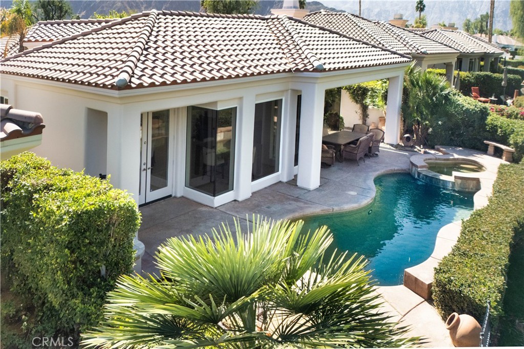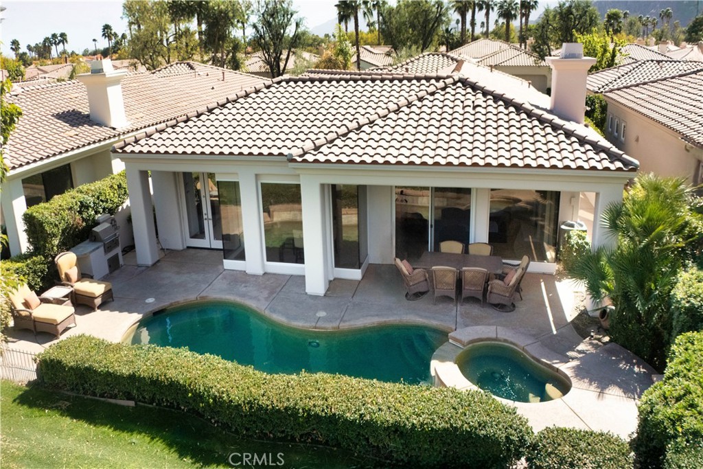 Great location on the 1st fairway of the beautiful Citrus Private Course. Spectacular views of three different fairways as well as the Santa Rosa Mountains. The owner has just finished extensive work including new interior and exterior paint, new Quartz countertops and backsplash in the kitchen and bar area along with new granite sink and hardware in the kitchen. The front courtyard leads to a beautiful new front door with a wonderful entry to an open floorplan, highlighted by a spacious kitchen and family room area. This area has large windows that bring in an abundance of natural light with multiple views of the golf course and mountains. The lovely pool and patio area is perfect for entertaining, such as relaxing by the bbq and enjoying the beautiful sunsets framed against the mountains. There are also new pool & Jacuzzi controls. The A/C condensers and furnace were recently replaced. There is inside laundry and direct access from the garage. Tremendous value for this lovely home.