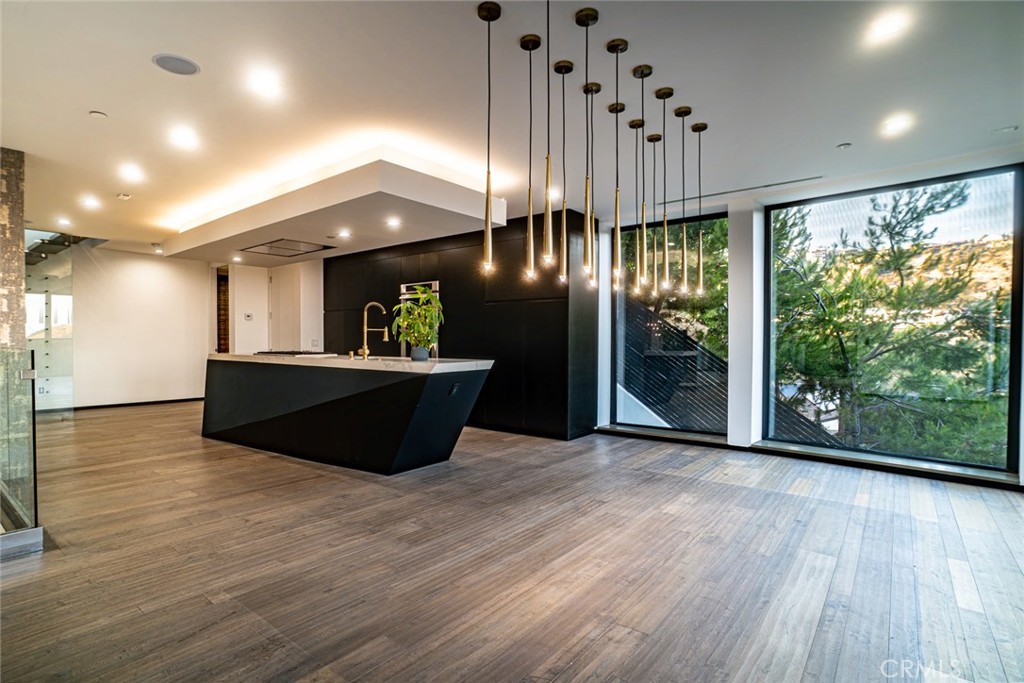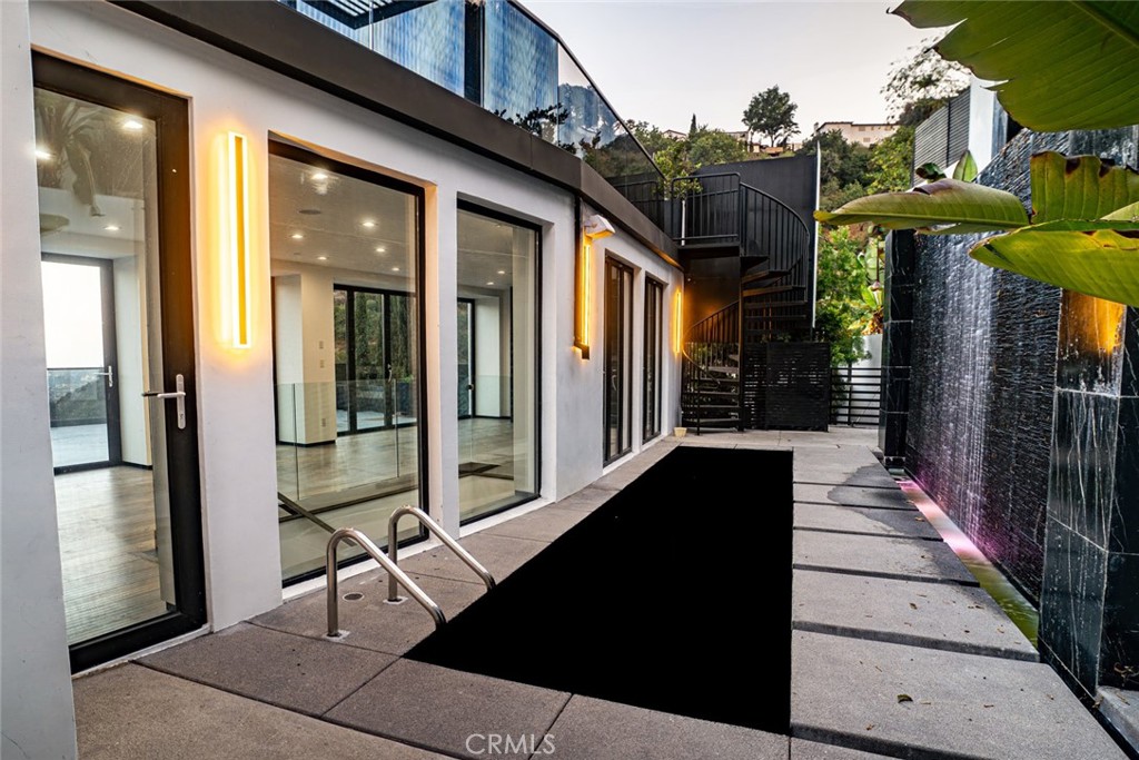 Perched in the Hollywood Hills with jaw-dropping downtown and canyon views, this newly built 4-bedroom, 6-bathroom residence is a showpiece of contemporary design and luxurious living. Two expansive rooftop decks include a spa-style hot tub, sauna, fire pit lounge, built-in BBQ, dry bar, and a striking two-tier waterfall that flows into the heated pool and spa. Perfect for entertaining or relaxing in total privacy. Inside, the open-concept living space features a chef’s kitchen with Thermador appliances, hidden double refrigerators, and a waterfall quartz island, flowing into the dining area and living room with terrace access. The spacious primary suite boasts a fireplace, custom walk-in closet, and spa-like bath with soaking tub and double rainfall showers. Each guest bedroom includes ensuite baths and walk-in closets. A private lower-level guest suite offers its own entrance, kitchen, laundry, and outdoor space — ideal for extended stays or staff quarters. Additional features include a 2-car garage with EV charging, glass elevator, multi-zone HVAC, and solar-ready infrastructure. Surrounded by mature olive and bonsai trees, this home blends tranquility with dramatic design — a true Hollywood Hills gem.