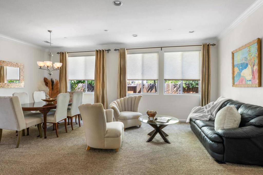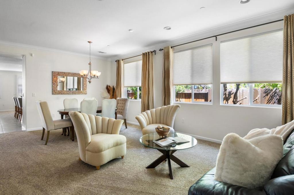 Gilroy’s North West Quadrant! Upscale neighborhood with great schools. Meticulously maintained inside and out with high ceilings, crown molding, and upgraded window treatments with shutters in most rooms. The kitchen is wide open with a beautiful island, stunning black splash, granite counters, gourmet stove, custom pull-out drawers, and opens to the spacious family room. New stainless dishwasher and new upgraded gas range, RO system, fire sprinkler system, and water softener. Large office/den could be a 5th bedroom. New programmable lights for the pergola and a variety of fruit trees, including lemon, lime, orange, and kumquat. There is solar and EV-ready wiring in place for your electric vehicle. The yard is nicely landscaped and is easy to maintain.