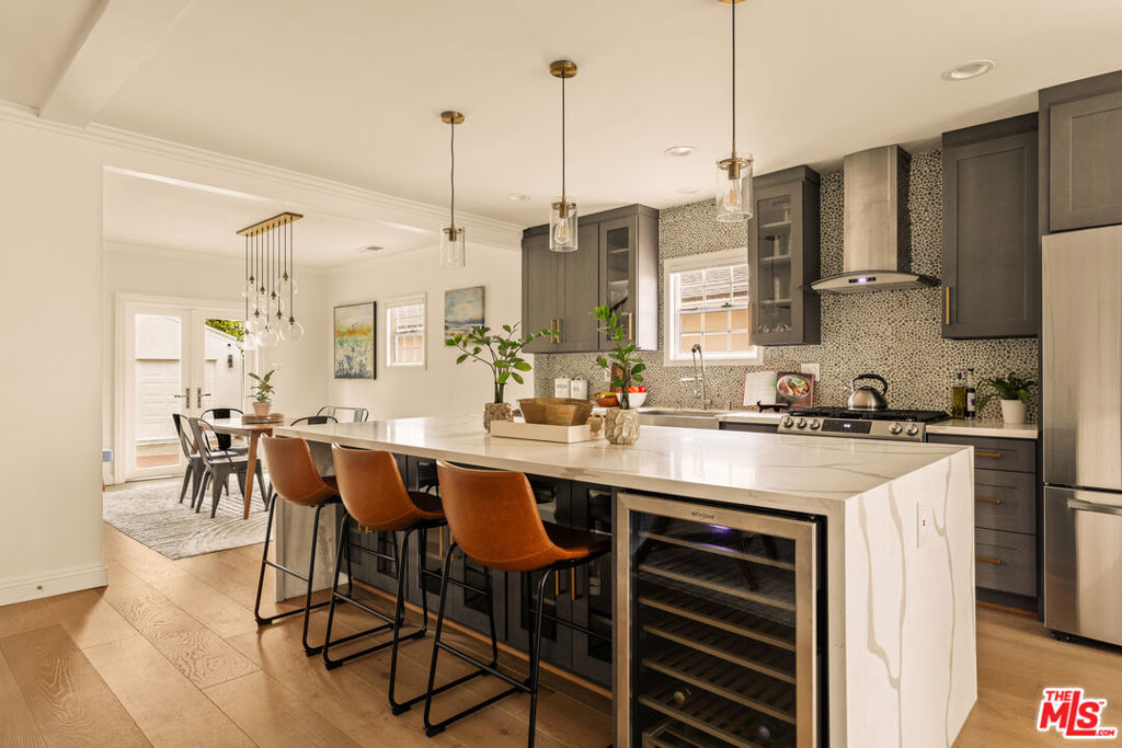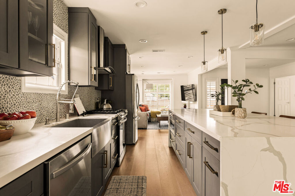 Beautifully remodeled and move-in ready, this five-bedroom, four-bath Kentwood residence blends modern comfort with timeless appeal. Natural light fills the spacious living room and flows into the open kitchen, where a generous island serves as the centerpiece for everyday meals and effortless entertaining. With stainless steel appliances, abundant cabinetry, and expansive counter space, this kitchen is as functional as it is inviting. The main level features a sophisticated primary suite, complete with a spa-like bath and custom walk-in closet, offering the convenience of single-level living. Upstairs, three additional bedrooms share a full bath, providing flexibility for family, guests, or a home office. A detached guest suite with a private entrance overlooks the backyard, perfect for extended stays or a creative workspace. Set on an extra-large lot, the home offers outdoor living at its best, with a sunlit deck, landscaped yard, and a rare double garage. Recent upgrades, including engineered hardwood floors, newly tiled baths, newly painted exterior, plantation shutters, and a newer roof, add comfort and peace of mind. Located in the heart of Westchester, the home offers easy access to neighborhood favorites like Tomat Restaurant and Triangle Wines, Westchester Golf Course, and the vibrant Playa Vista Runway. Just minutes from LAX, Silicon Beach, and the shoreline, it places the best of the Westside right at your doorstep.