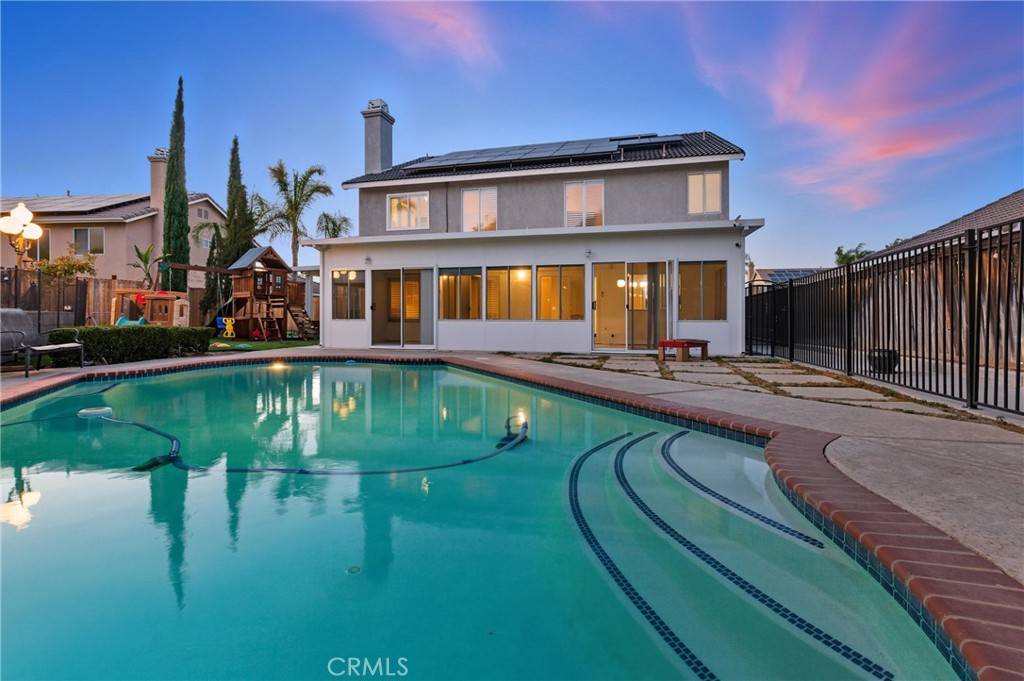 Stunning Turnkey!! POOL & SPA, 3 CAR GARAGE & RV Parking home with 17 SOLAR PANELS on a Cul-de-Sac in Prestigious South Corona’s Mountain Gate Neighborhood. Entertainer back & side yard. Santiago High School Zone. No Mello Roos, No HOA. OPEN FLOOR PLAN. Natural sunlight permeates this home which is upgraded from top to bottom. Luxurious wood flooring throughout. This 4 Bedroom 3 Bath plus Loft boasts State of the art appliances inside the Gourmet Kitchen. Smart home features galore. Energy efficient “HONEYCOMB” shades in Sunrooms. Two AC compressors will keep you cool powered by mother nature’s Sun rays & Solar panels. Whole House Water Filtration System. Plantation Shutters throughout except in the Loft. Walk to Award Winning Eisenhower Elementary. Albertsons, Baskin Robbins ice cream, Banks and all shopping within Walking distance. Kid & party friendly back & side yard equipped with a termite resistant ALUMAWOOD covered Patio. Brand new built-in BBQ Station with roof and lights. Pool fence included. Seller added legally permitted 374 sq.ft of living space which is pending public records update. This will not last!