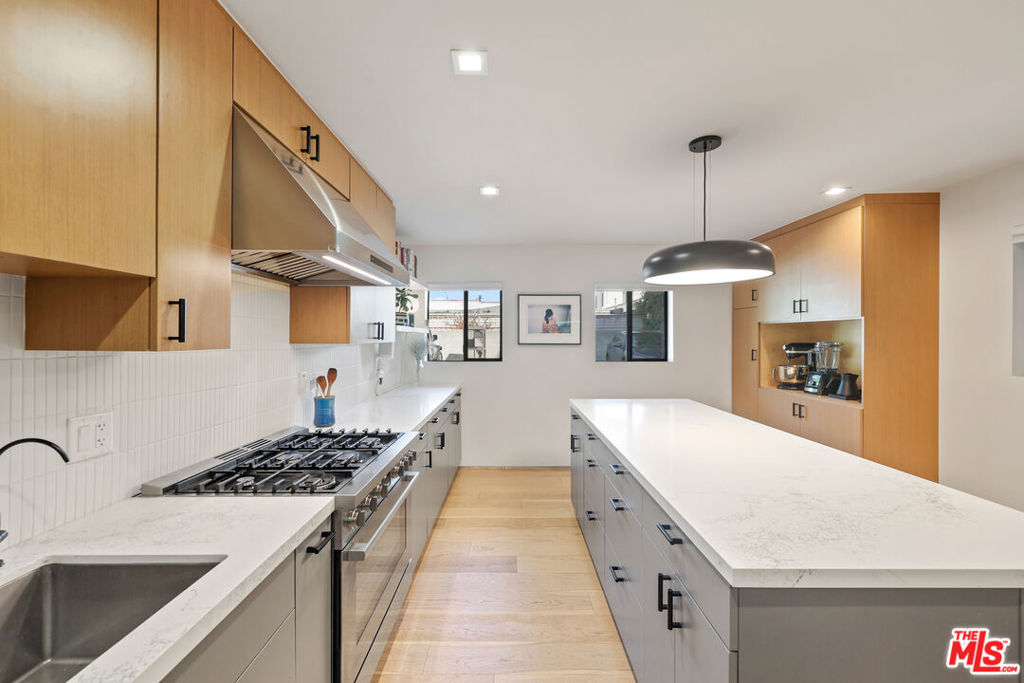 Located on a Sycamore-lined residential block triangulated between Hancock Park, West Hollywood, and Hollywood, find this large 1-bedroom, 1-bathroom condominium in a down-to-the-studs remodeled 4-unit building completed in 2023. This unit boasts a lengthy list of aesthetic and functional must-haves and high-end upgrades. Standouts include beautiful wide-plank oak floors, new dual-pane windows, 2-zone high-efficiency mini-splits, updated plumbing, electrical, and roofing, as well as an in-unit washer and dryer. Highlighting the interior is a sprawling chef’s kitchen perfect for entertaining, complete with custom cabinetry, Quartz countertops, dishwasher and a 6 burner gas stove. The oversized bedroom features a large closet and blackout blinds. The property’s location provides easy access to the best of LA, with a quick drive to the 101 freeway and a 93 Walk Score. Dozens of neighborhood favorites along La Brea, Santa Monica, Highland and Melrose are just blocks away. The building features a secure, gated parking lot with 2 reserved, side-by-side spaces that already have EV charging installed, as well as easy permitted guest parking on the street. The front of the building has a communal dog run with an eco-friendly lawn. HOA covers water, sewage, trash, landscaping, and an exterior security camera system. Enjoy the ultimate in comfort and convenience in this beautifully appointed condominium, where luxury meets functionality in a prime location in Los Angeles.
