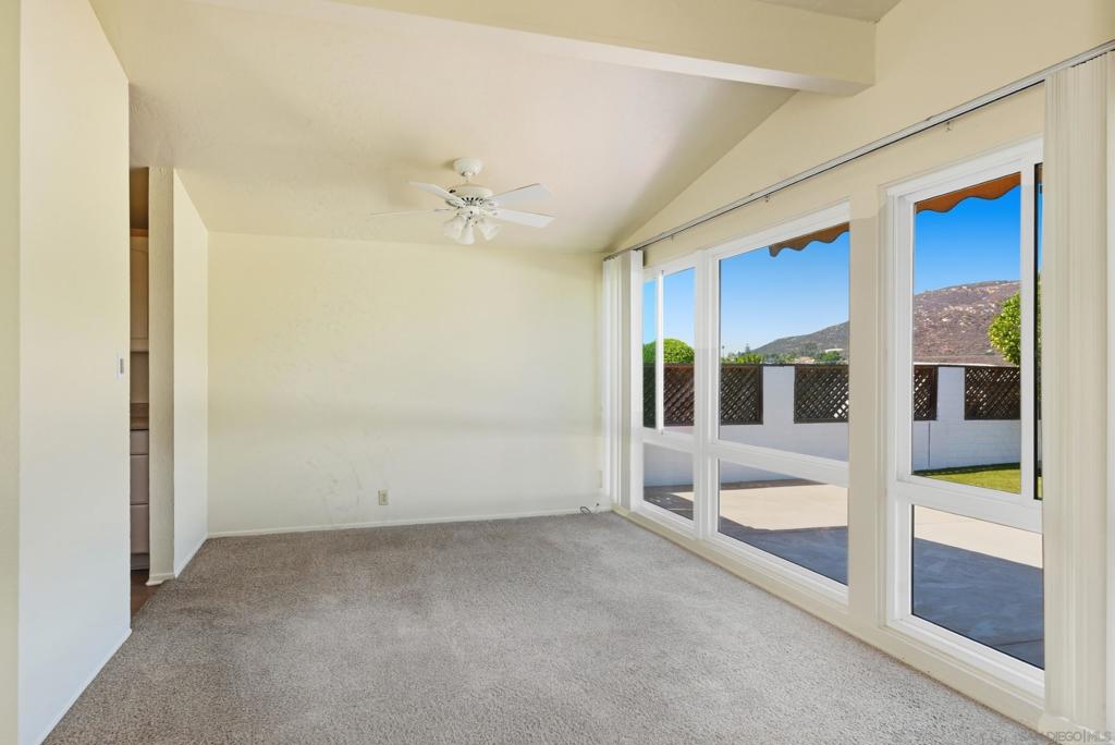 Move in to this lovely 3 bedroom/2 bath home with peaceful views to the Northwest. Sit on the patio and enjoy a serene view. The retractable awning makes it easy to be comfortable here. Notice the artificial lawn in both the front and the back yards giving you more time to enjoy the view and the home. Enter in the double doors to an atrium area. Great for morning coffee. As you enter the home the large living room with vaulted ceilings gives a spacious feel. The wood burning fireplace is a great focal point. The galley kitchen is very efficient. The room next to the kitchen could be an office or a dining room. Down the hall from the living room are three bedrooms. The primary is generous with views to the mountain. The secondary bedrooms have great closet space. This charming home is great for entertaining or just enjoying the quiet view. You are close to shopping and churches and freeway access. Schools are close.
