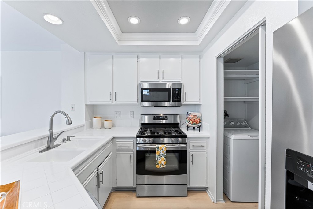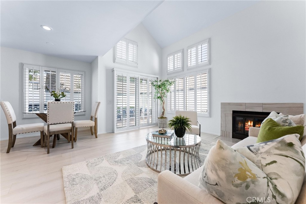 Light-filled end-unit townhome located inside the loop of the Woodbridge community. This two-bedroom, 2.5-bath residence offers an open main living area with luxury vinyl plank flooring, recessed lighting, and a gas fireplace. The updated kitchen features stainless steel appliances, ample cabinetry, and an extended counter for everyday use or casual dining. Both upstairs bathrooms have been refreshed with modern finishes, and the bedrooms are well-proportioned with good natural light. The end-unit location provides added privacy and a larger enclosed patio, creating functional indoor-outdoor living space. No neighbors above or below. Additional features include central air conditioning, in-unit laundry hookups, plantation shutters, and assigned parking. Residents enjoy access to Woodbridge amenities including lakes, beaches, pools, tennis courts, parks, and an extensive network of walking and biking paths. Conveniently located near shopping, dining, and major commuter routes.