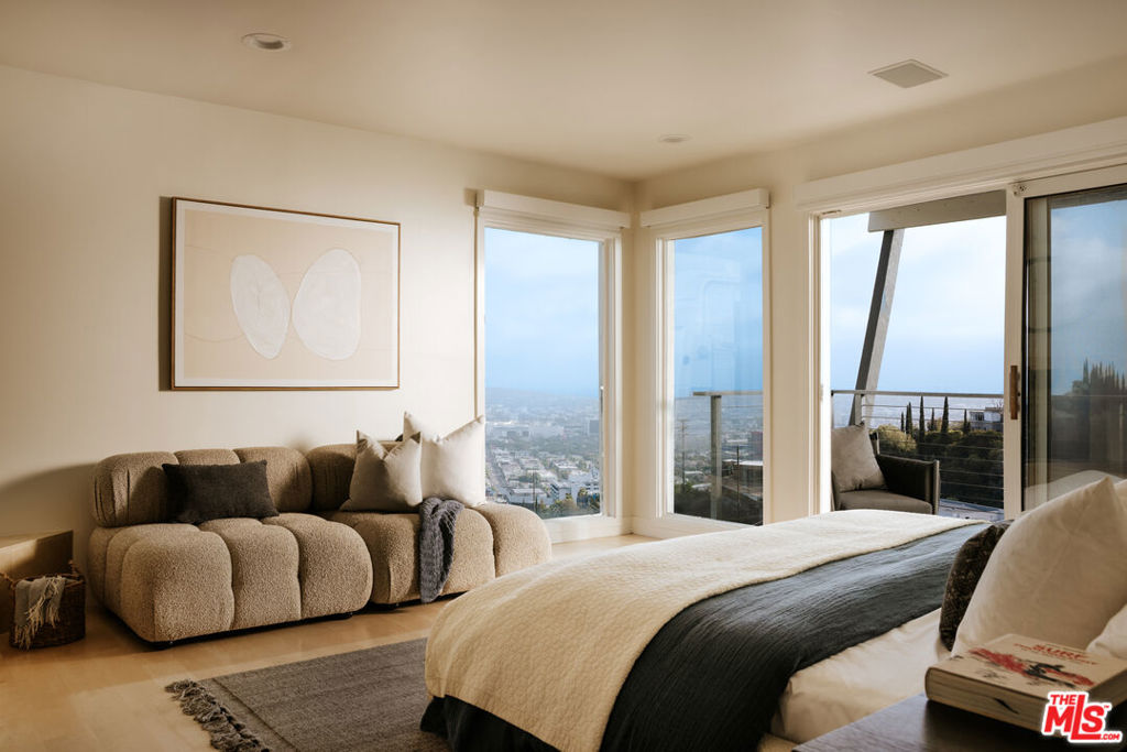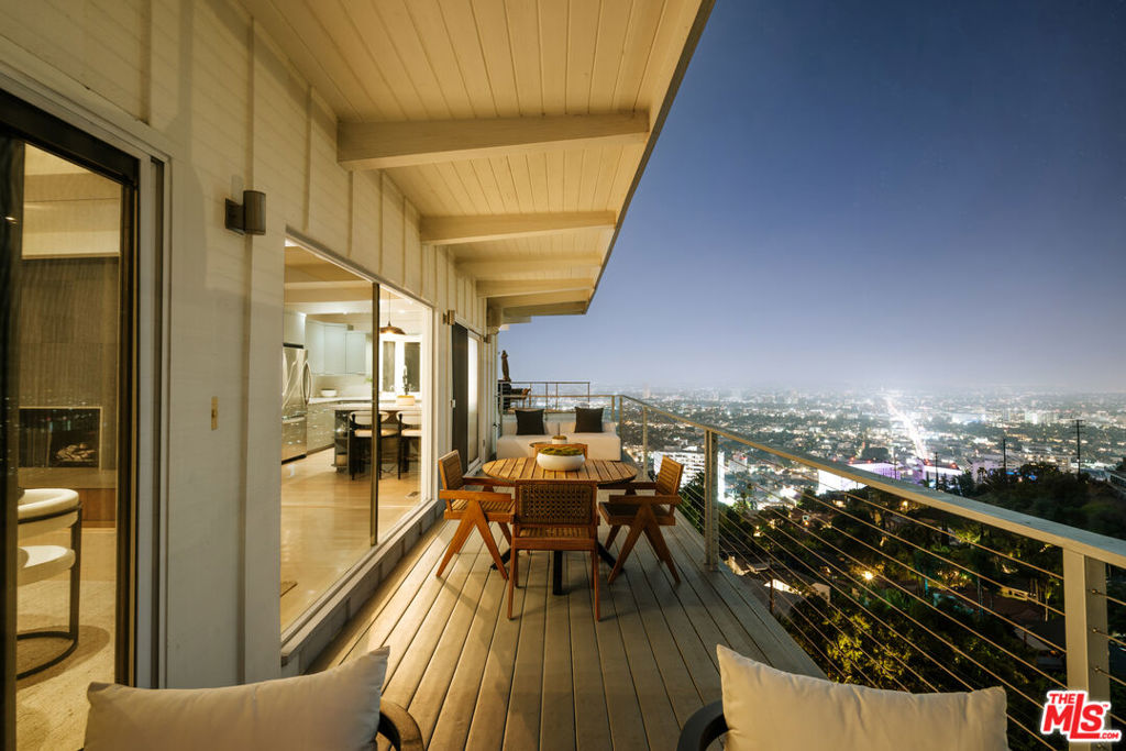 Just above the iconic Sunset Strip, this sleek contemporary home captures sweeping 180-degree views from the hills to the ocean. Floor-to-ceiling glass doors open to two expansive, newly renovated double-decker decks, perfect for seamless indoor-outdoor living and sunset entertaining. The light-filled interior features an open layout with wood-beam ceilings, a modern fireplace, and a designer kitchen that flows into the living and dining areas. All three bedrooms are on the lower level, including a spacious primary suite with its own fireplace, walk-in closet, and direct access to the lower deck, all with stunning views. Located in the heart of the Hollywood Hills, just moments from top restaurants, boutiques, and nightlife, this is a rare opportunity to own a true view property in one of L.A.’s most coveted neighborhoods.