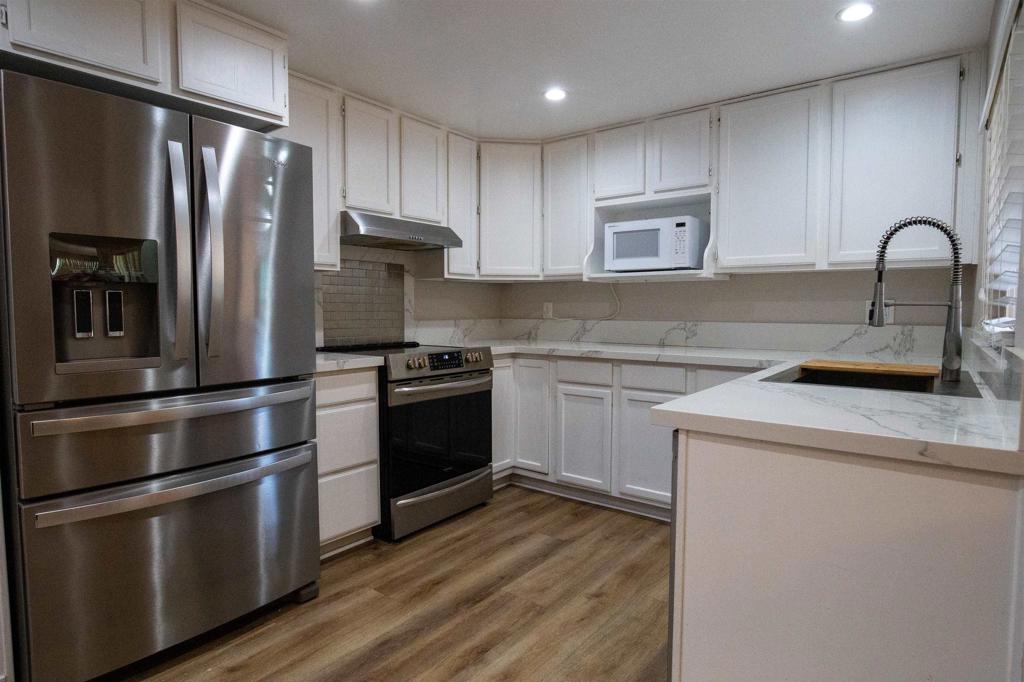 Well-designed three-bedroom, two-bath ground-floor condo with a functional, flowing layout. The living room opens to a spacious dining area with a sliding door to a private patio featuring an in-unit washer and dryer. The open kitchen offers ample storage and a second slider leading to an additional private patio, ideal for relaxing or dining outdoors. Two guest bedrooms and a full bath are located off the main hallway, which wraps around to the primary bedroom with an ensuite bath. Includes one deeded, covered carport parking space. Community amenities include pools and community laundry. Centrally located in San Carlos with easy access to the 125 freeway, grocery stores, parks, and local amenities.