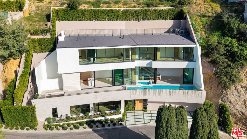 New construction! Available unfurnished or fully furnished. Modern architectural residence set on a 12,071 sq ft lot, offering approximately 5,400 sq ft of refined indoor living across three levels with elevator access. The open-concept design features walls of glass, city and ocean views, two fireplaces, and seamless indoor/outdoor flow to a pool, jacuzzi, and fire pit. Interior amenities include a Miele-equipped kitchen, Control4 home automation, and a 3-car indoor garage. The home features 4 bedrooms, 4 bathrooms, and 2 powder rooms, plus a large rooftop deck ideal for entertaining. This property may also be leased together with the neighboring residence to create a side-by-side two-home, approximately 10-bedroom compound. Available furnished or unfurnished; photos of the furnished neighboring home (8777 Hollywood) illustrate that this residence can be similarly furnished as the home next door. Prime location near the Sunset Strip, Hollywood, and Westside destinations.