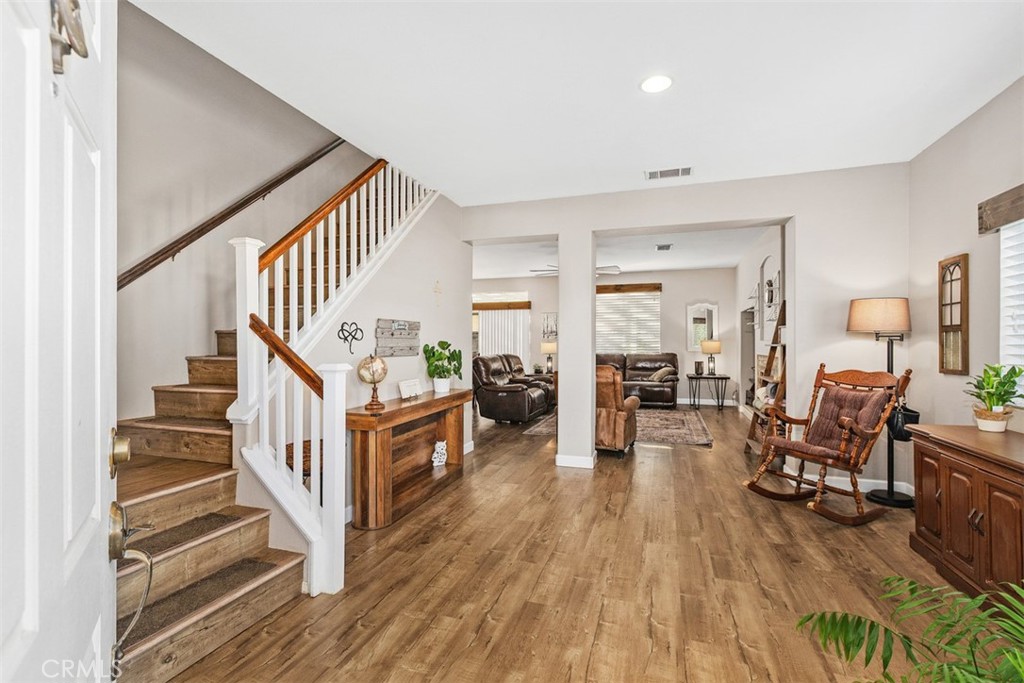 Great home located in one of the best areas of the City of Corona. Close to Dos Logos shopping along with a brief minute drive to access the 15 Freeway north or south. Even a Trader Joe’s and the fantastic Trilogy Golf Course and Dos Logos Golf course nearby. All necessary shopping and amenities are easy access. Location has natures afternoon daily cool breeze. Home has been maintained to the highest degree and is an original owner purchased new home. Very well-maintained homes and extra wide street with ample parking out front and give the comfort of an open feeling. Large Family room leads from the open-air kitchen with island for entertaining or watching your favorite show or game. Fully fenced “Vinyl and Cement Block” backyard is a pleasure to host those family parties. The four upstairs bedrooms are a delight along with the large closet spaces. Adjoining bedrooms have a jack n jill bath. Note the large side yards possible large storage shed could be added Possible R/V parking buyer to satisfy.