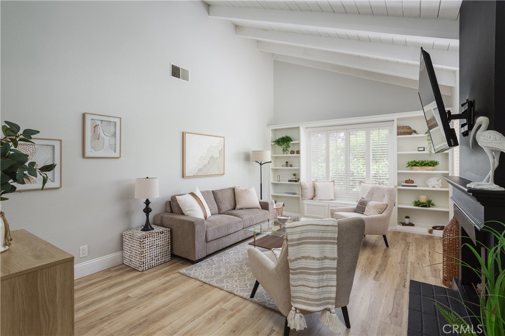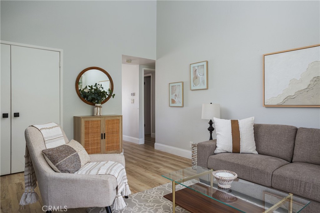 Welcome to 9 Sandflower Ct. in vibrant community of Newport Terrace. Not too often does the opportunity to own a highly desirable end unit that truly feels like your very own. This private single level end unit sits at the edge of the community directly across from Canyon Park and Talbert Nature Preserve. You are just steps away from beautiful tree lined trails in the nature preserve that provides direct access to walking trails, bike paths, outdoor activities and the Santa Ana River Trail leading directly to the beach with access to Newport Beach to the South and Huntington Beach to the North. This 2 bedroom, 2 bathroom condo with an enclosed courtyard just off the private 1 car garage has been fully remodeled and beautifully designed with upgraded bathrooms, kitchens, and flooring. As you enter the main living area you are greeted with spacious high vaulted ceilings and a bright open space. For those seeking relaxation and recreation the community features pools, a spa, basketball courts, and private outdoor seating areas. The condo features two spacious bedrooms and two fully renovated bathrooms, providing a fresh and contemporary feel. Including a bright and airy windowed kitchen, this home is designed to accommodate a variety of lifestyles. The kitchen is outfitted with a gas oven, gas stove, refrigerator, and dishwasher, making meal preparation a pleasure. The convenience of an in-unit washer and dryer further enhances the ease of living. For those seeking relaxation and recreation, the communal pool and common hot tub are ideal spots to unwind. Enjoy the luxury of a private patio, perfect for outdoor dining or simply soaking up the California sun.