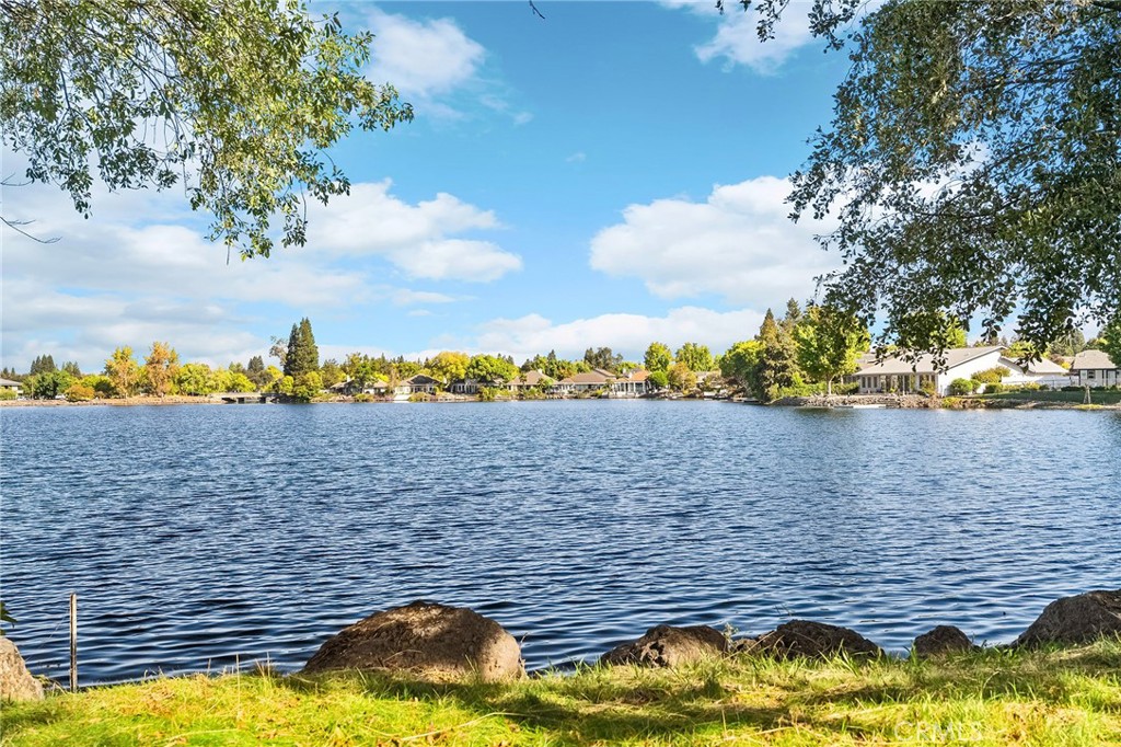 Lakefront End Unit with Terrific Views! This rare end-unit, single-story condo in Sierra Sunrise Village at California Park offers 2 bedrooms, 2 bathrooms, and 1,300 sq. ft. of living space with lakefront views and privacy—only one shared wall and no neighbor to block your view. Located at the end of the lake, you’ll enjoy sunsets, wildlife, and a peaceful trail around the water. The kitchen features newer stainless steel appliances, freshly painted cabinets, and easy-care laminate wood floors throughout, creating a bright and welcoming space. Sliders from the dining area open to a patio with serene lake views, perfect for relaxing or entertaining. The primary bedroom includes a walk-in closet, and the layout also offers a spacious guest bath, guest bedroom, linen and coat closets, and an in-unit laundry. Add kayaks or bicycles and enjoy all that Chico has to offer. Sierra Sunrise Village is a 55+ community with landscaped grounds, lake access, a dock, tennis courts, and daily security patrols, making this an exceptional place to downsize, retire, or enjoy a tranquil lakefront lifestyle.