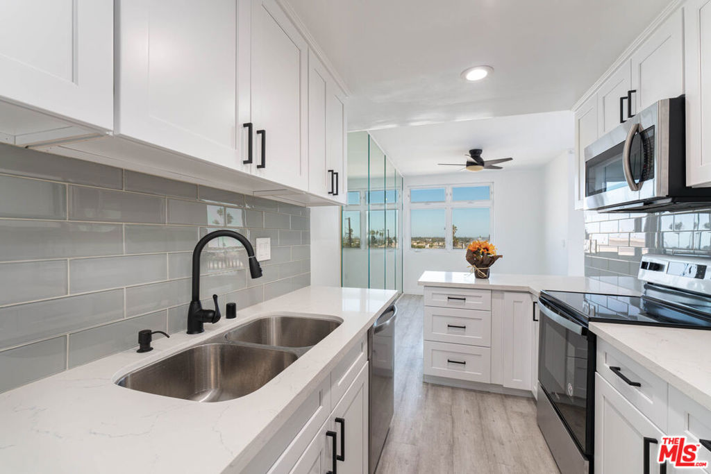 Stunningly remodeled penthouse with abundant natural light and peek-a-boo ocean vistas, nestled in the vibrant heart of Santa Monica just moments from the chic boutiques of Montana Avenue. This rare corner unit boasts 2 bedrooms and 2 bathrooms, each offering expansive views of both the coastline and mountains. The modern gourmet kitchen is a chef’s dream, featuring quartz countertops, stainless steel appliances, bespoke shaker cabinetry, and a convenient breakfast bar that seamlessly connects to the dining area. Throughout the condo, you’ll find elegant light gray flooring complemented by a pristine white tiled fireplace. Indulge in luxury within the master bathroom, which showcases custom vanities, a sumptuous bathtub, and a separate glass door shower. With only a block separating you from the bustling shops and dining options of Montana Avenue, and mere minutes from Palisades Park, Third Street Promenade, and the beach, convenience and leisure are at your fingertips. Additional amenities include two side-by-side parking spaces, a recreational room, hot tub, and sauna, ensuring a lifestyle of both comfort and indulgence.