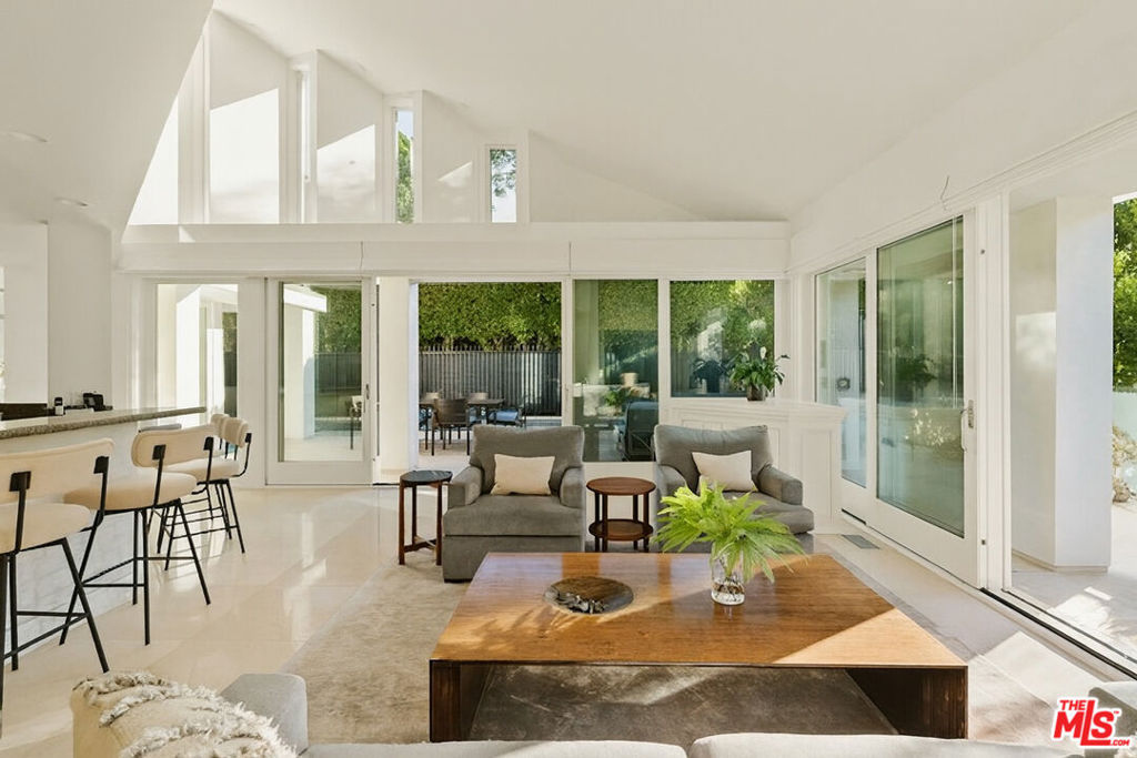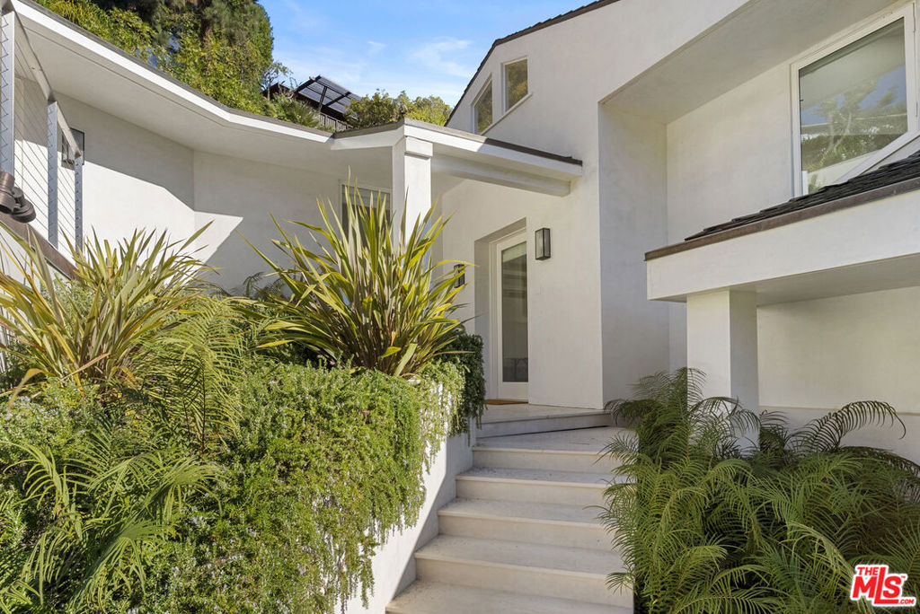 Beautiful furnished contemporary architectural jewel tucked away at the end of a cul-de-sac street in lower Doheny Bird Streets. Elevated from the street and behind stainless steel gates. Sun filled open spaces with walls of glass opening to patios and overlooking sparkling pool, spa and waterfall. Loft style living room with hardwood floors, gourmet kitchen, family room with fireplace, spacious bedrooms, elevator and a separate guest house/studio w/ bath. Long term tenants preferred. Some art and rugs are virtually staged and will not be included in the furnished rental.