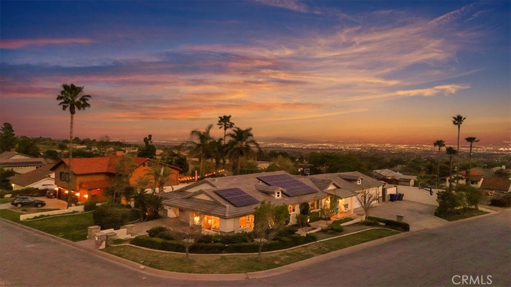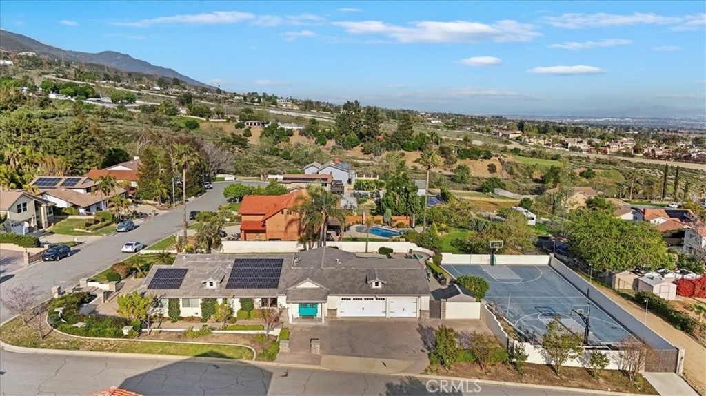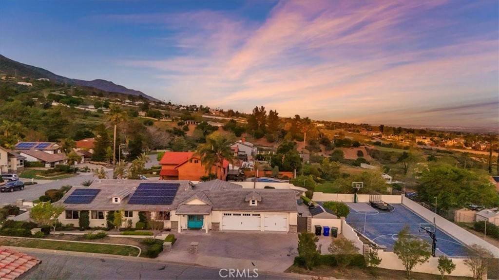 Welcome to this exceptional 3 Bed 2 Bath single story home with a bonus converted garage, offering approximately 2,200 square feet of beautifully upgraded living space on a generous lot just under half an acre. Set in a private location with sweeping panoramic city views, this home is the epitome of resort-style living. From the moment you arrive, the immaculate curb appeal stands out with newly remodeled details including stacked stone columns and a sleek concrete finish. Inside, natural hickory hardwood flooring installed in 2023 leads you through an open concept layout featuring smooth finish drywall, new baseboards and trim, and tinted windows that complement the modern aesthetic. The kitchen showcases Thermafoil heat-pressured cabinetry designed for lasting durability. Each bedroom is outfitted with ceiling fans for year round comfort, along with an attic cooling fan to boost efficiency. Energy-saving features are found throughout the home, including LED lighting, an upgraded electrical main panel, and fully paid-off solar panels that will transfer at close. The garage has been finished with a durable epoxy-coated floor, adding a polished touch. Major systems have been thoughtfully updated, with the roof replaced in 2014, the furnace in 2014, and the AC unit in 2016. The spacious lot also offers excellent potential for future additions, making this home a perfect combination of comfort, style, and room to grow. Step outside to discover a backyard designed for both entertainment and relaxation. A covered patio deck features a tongue and groove ceiling, setting the stage for gatherings and quiet evenings alike with stunning views. The Pebble Tec pool includes a Baja shelf, waterfall feature, and a stunning glass fire pit. Sports enthusiasts will appreciate the basketball court with adjustable hoops, which is also set up for pickle ball play. Additional highlights include lower level street access with an extra driveway, a double iron gate leading to RV parking with a dedicated electrical outlet, and raised garden beds with irrigation. The backyard is framed by smooth stucco-finished block walls and enhanced with timed landscape lightingThis is more than just a home—it’s a private retreat with unparalleled views, luxurious upgrades, and room for endless possibilities. This is more than just a home, it’s a private retreat with unparalleled views, luxurious upgrades. Don’t miss your opportunity to make it yours