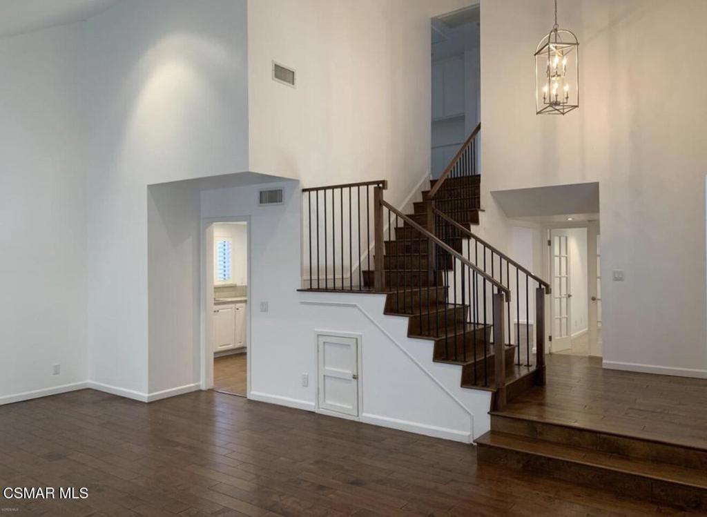 Step through the front door into this extensively updated, light-filled home featuring soaring ceilings, a statement chandelier, and an elegant staircase. The living room offers vaulted ceilings, plantation shutters, a fireplace with granite surround, and recessed lighting, flowing into the formal dining area with patio views. The kitchen features quartz countertops and ample cabinetry, and opens to the family room. A versatile first-floor room offers the option for a bedroom or home office.Upstairs, the spacious primary suite features vaulted ceilings, abundant natural light, and a well-appointed en-suite bath with dual vanities. Upstairs also includes a well-sized secondary bedroom with a full hall bathroom adjacent to the bedroom.Enjoy the private patio, perfect for relaxing or entertaining. Additional amenities include central A/C and a 2-car garage. Located near award-winning Oak Park schools, parks, trails, and local amenities.