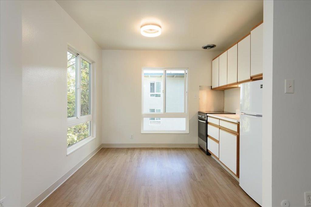 Bright Corner Studio in San Mateos Resort-Style Woodlake Community. This highly desirable third-floor corner studio offers one of the larger floor plans at Woodlake. The spacious kitchen easily accommodates a dining table and chairs, while fresh paint, new carpeting, and luxury vinyl flooring create a modern, move-in-ready feel. Flooded with natural light and framed by treetop views, this home is both inviting and functional. Woodlake is renowned for its resort-style amenities and tranquil setting, featuring beautifully landscaped grounds, a central duck pond, and winding walking paths. Residents enjoy six pools (including an Olympic-size pool), a fully equipped gym, four lighted tennis courts, saunas, steam room, putting green, and a spacious clubhouse. Everyday conveniences are just steps away with Safeway, CVS, and Starbucks nearby. Ideally located close to downtown Burlingame and San Mateo, Caltrain, SFO, Coyote Point, Bayfront trails, and Highway 101.