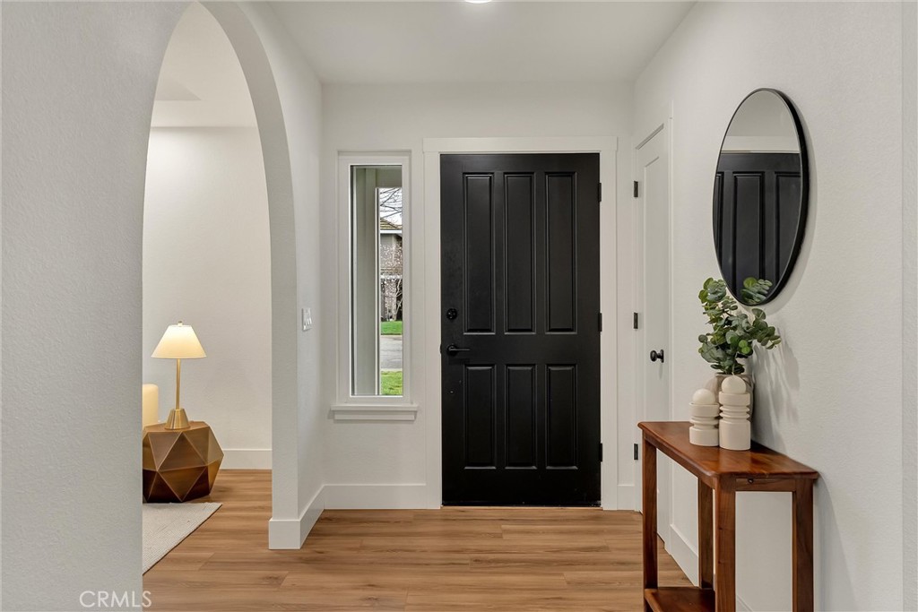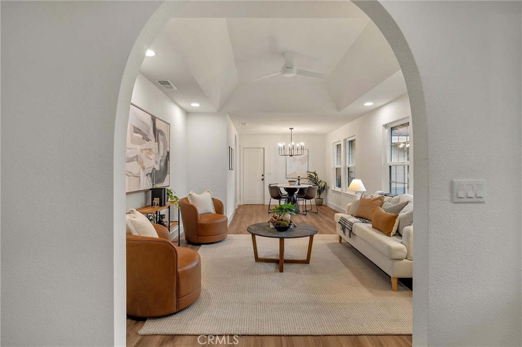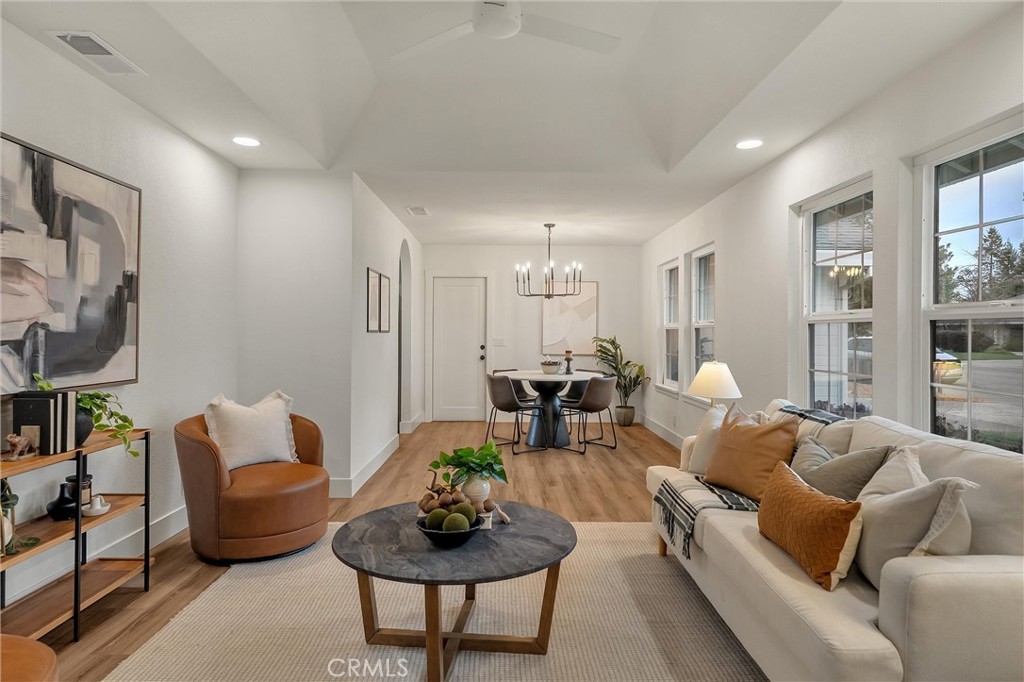 Step into a beautifully updated 4-bedroom, 2-bath home where home situated on a large in-town lot, conveniently located just minutes from schools, shopping, and parks. Extensive renovations were completed approximately 2½ years ago by the previous seller. At that time, the exterior received fresh paint, creating inviting curb appeal that sets the tone for what awaits inside. Upon entry, an arched doorway leads into the formal living and dining areas, where large windows fill the space with natural light and highlight the freshly painted interior. In the family room, a striking white fireplace with wooden mantle and electric insert serves as a warm and welcoming focal point. Tray ceilings and abundant windows enhance the open, airy feel throughout. The fully remodeled kitchen, completed during the prior updates, seamlessly connects to the family room and features quartz countertops, a center island, custom cabinetry, updated appliances, and a farmhouse sink—ideal for both everyday living and entertaining. The spacious primary suite offers a peaceful retreat with a remodeled ensuite bathroom showcasing dual sinks and a walk-in shower with subway tile surround. The guest bathroom was also beautifully remodeled at that time with carefully selected finishes and fixtures. Additional improvements completed approximately 2½ years ago include newer flooring throughout, updated baseboards, doors, door hardware, and trim, modernized light switches and outlets, LED exterior lighting, and a retextured and painted garage. A whole house fan ensures optimal ventilation. Gutter guards were installed helping reduce maintenance. The landscaping was refreshed with new bark, and the property offers RV parking with 30 amp hookups for added flexibility. And to top it all off with OWNED solar adding valuable energy efficiency to this thoughtfully upgraded home. Move-in ready with major improvements already in place.