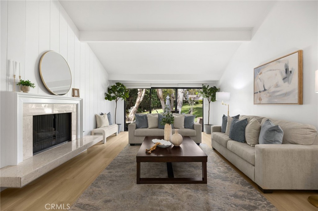 The gated community of Friendly Woods is a much sought after enclave of only 36 homes in Whittier – an oasis with manicured greenery, a swimming pool, spa and tennis court, yet convenient to civilization. This home in particular has been freshly renovated to please the most discerning home buyer. The “beachy” floors and warm white walls give this home an expansive, inviting vibe. The large galley kitchen has new flat front cabinet doors and drawer fronts (easy to clean), quartz counters, stainless 5 burner cook top, double oven and stainless fridge and dishwasher. The dining nook has glass doors overlooking your private courtyard, a small secretary’s desk and washer/dryer tucked into a closet. The great room is perfect for entertaining. Imagine gathering for a meal with your loved ones, the ambience of the fireplace, the expansive sliding doors that open onto your patio and the green belt beyond. From the great room you can climb the spiral staircase up to the loft which makes a terrific home office – it’s private without feeling “locked away” while you work. While you’re up there, be sure to look for the secret doors in the paneling that conceal book shelves and a filing cabinet. Both bedrooms are quite large. The spa-like primary en-suite bath has a gorgeous walk-in shower with custom tile work, a vessel soaking tub with floor mounted fixtures, double sinks and lots of storage. The primary bedroom has a walk in closet + a second smaller closet, a built-in vanity and a gas fireplace – you’ll never want to leave. Even the secondary bedroom is large with original floor to ceiling windows overlooking your private front court yard. Home has an attached, oversized two-car garage with a utility area and ample guest parking available. GATE WILL BE OPEN DURING OPEN HOUSE HOURS
