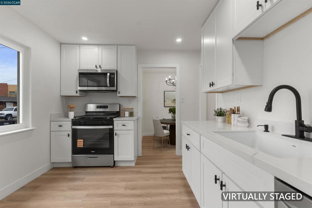 STUNNING single story home in Pittsburg’s Cornwall neighborhood! This beauty features fresh interior and exterior paint, rich laminate floor, updated fixtures and more! Marvel at the abundance of charm and natural light upon entering. Kitchen flows seamlessly with the dining area. Kitchen boasts stainless steel appliances, gorgeous quartz counter tops and ample cabinet space. Additional perks include double pane windows, an attached garage, and a large back yard with enough room for possible expansion or an ADU. Close proximity to freeways and shopping. This gem is truly a MUST-SEE and will go fast! Come take a look today!