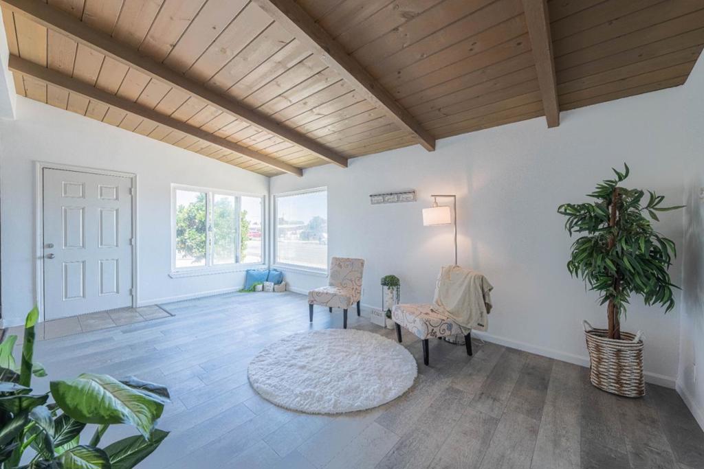 Welcome to this 4-bed, 2-bath, 1900-square-foot home! Your eyes will be drawn to the beautiful wooden ceilings. This home features newer kitchen appliances, a newer roof installed in October 2024, plus a freshly painted interior. The bathrooms have new vanities, flooring, and toilets. The kitchen cabinets have also been painted, and the driveway has been extended to provide additional parking for your larger vehicles! It even comes with some newer fencing. There is a sweet little side patio perfect for relaxing in the evening. Plus, there are 2 permitted side bonus rooms, which makes this space perfect for entertaining, turning into a game room or use your imagination to enjoy! There’s even a utility sink in the garage! You don’t want to miss this great home!