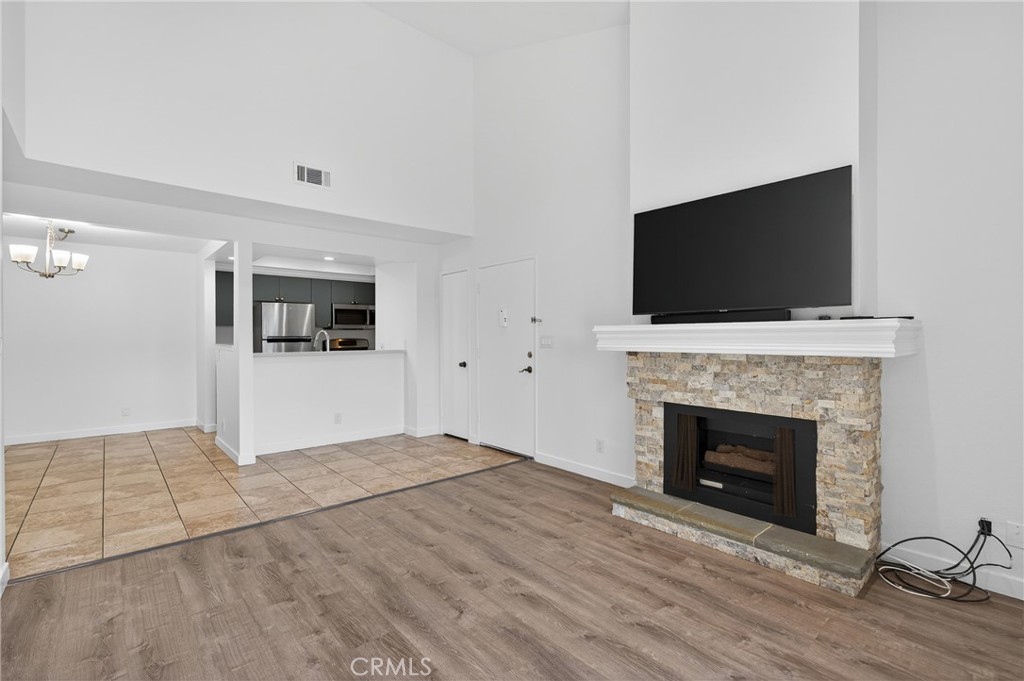Welcome to this spacious and well-maintained three-bedroom, two-bathroom condo located in a secure gated community in the heart of North Hills. The home features an open and bright living room with high ceilings, a cozy fireplace, and direct access to a private deck, creating the perfect setting for relaxing or entertaining. The functional layout offers plenty of natural light throughout, enhancing the warm and inviting atmosphere. The kitchen comes fully equipped with a microwave, refrigerator, and ample cabinetry for storage. Tile flooring flows seamlessly throughout the home, providing easy maintenance and durability. A stacked washer and dryer are conveniently included inside the unit. The property also features central air conditioning and heating, attic access for additional storage, and a thoughtfully designed floor plan that maximizes comfort and functionality. Two assigned covered carport parking spaces are located within a gated parking area for added security and convenience. Residents of this community enjoy access to a sparkling swimming pool, relaxing jacuzzi, and well-maintained landscaped common areas managed by the homeowners association. This property offers an excellent location with easy access to major freeways, shopping centers, restaurants, schools, and public transportation. Whether you are a first-time homebuyer, looking to downsize, or searching for an investment property, this condo provides the perfect combination of comfort, practicality, and accessibility in one desirable package.