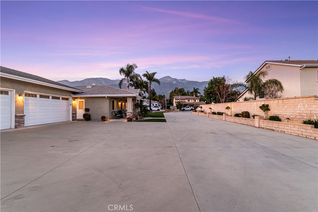 Stunning single story Alta Loma home, nestled in a cozy cul de sac with spectacular mountain view’s and so many extras! Move in ready, this single story home now 2000sq.ft. was completely remodeled (taken down to the studs), & added onto w/ permits, specialized materials, & superior craftsmanship, tailored to lifestyle, with much attention to detail. Its features are too numerous to list here, but some include the now, 1200 sq.ft. oversized & finished, 4 car, extra deep garage! Big trucks fit with its 8′ tall doors & one bay is a pull thru! This garage also has a 3/4 bathroom inside! Some of its other features include, new garage door openers, ceiling fans, storage area above with pull down stairs, surround sound, plumbed for utility sink, & outdoor tiled shower near pool area! Also enjoy the extra large driveway with plenty of room for you &/or your guests to park, maybe a dozen cars or more! Plus, there is an outdoor boat or RV parking area with full hookups! The inviting covered front porch area with ceiling fans, warmly welcome you to the beautiful front entrance. Inside, relaxing colors welcome you into the spacious open floor plan. Well appointed tasteful features include luxury vinyl plank flooring, window shutters, dual pane Milgard windows, copper plumbing, can & other lighting w/ dimmers. Beautiful gourmet kitchen looks onto the dining room, living & family room areas. White kitchen cabinetry, granite countertops, walk-in pantry w/ glass door, large breakfast bar area, & a multitude of special lighting features throughout to help create the perfect mood for your occasion! Other upgraded comfort features include a beautiful gas fireplace in the living room, ceiling fans galore & the extra outdoor outlets make Christmas lighting decorating easier! The 4th bedroom, currently being used as an office, is conveniently located & has its own private entrance! On the other side of the home you will find bed & bathrooms, indoor laundry room & storage cabinetry just across the hall. The primary en-suite, has spacious walk-in closet, & XL shower! Stay cool in the backyard, under the covered patio. Take a dip in the refreshing pool while under the umbrella in the shallow water on the baja reef shelf, while enjoying mountain views & hearing the water falls. Relax in the spacious bubbly spa or lounge around the gas fire pit with friends. So many extras here! Come book a tour, to see and hear all about them & experience this customized estate for yourself.
