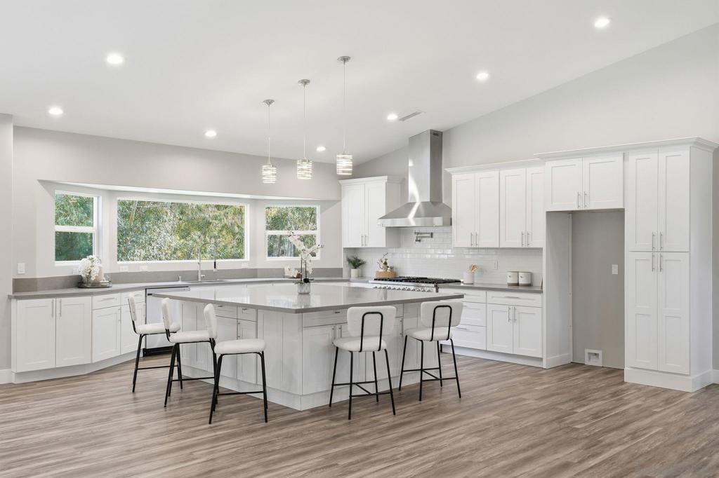 Welcome to 9965 Dunbar Lane in El Cajon. If you’re looking for a move-in ready home with a ton of upgrades, then look no more. You found it!! This gated property is tucked away and down a long driveway, surrounded by palm and eucalyptus trees for extra privacy and a peaceful vibe. This home features 4 spacious bedrooms and 2.5 bathrooms, all on a single level with high vaulted ceilings and an open floor plan that is bright and airy. Need flexibility? The attached studio ADU has its own entrance, vaulted ceiling, new mini-split heating/cooling unit, water heater, microwave, kitchen area and laundry hookups—perfect for guests, a home office, or rental income. Almost everything here is brand new—air conditioner, dual-pane windows, electrical, plumbing, ducting, flooring, insulation, water heater, furnace, light fixtures, kitchen appliances, countertops, cabinets, bathrooms, roof, and more. The main kitchen is a showstopper with a massive island (7.5’ x 8’), 8-burner Forno oven/stove which can be used with or without the griddle, solid surface countertops, and stylish tile backsplash. The primary suite has a spacious walk-in closet and built-in blinds in the sliding dual-pane door, plus the laundry area is conveniently located near all of the bedrooms. Natural light pours in from windows all around, making every room feel cheerful. Outside, you’ll find new turf in front and plenty of space to park your RV, boat and offroad toys. The solar system will save you money and keep your utility costs low. This home offers the feel of a brand-new house in a peaceful, secluded location, fulfilling all of your requirements. Come see it for yourself!