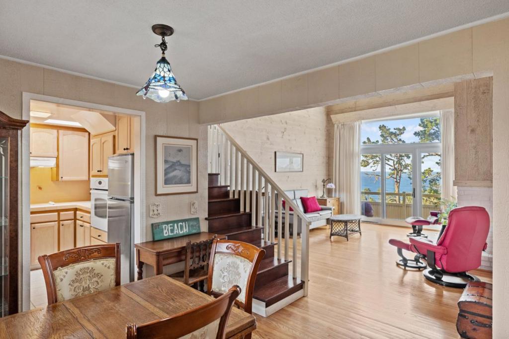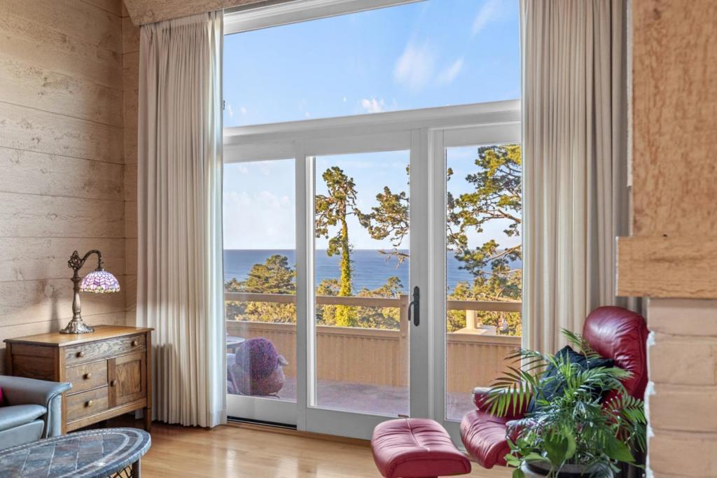 Wow this magnificent view will take your breath away, ocean view from Point Lobos to Pebble Beach. Nice living room with very high ceilings, hardwood floors, and cozy fireplace. One bedroom with the same spectacular view, one bath and a bonus loft that can be used as guest bedroom or office. Spacious deck, great for watching beautiful Carmel sunsets or seasonal whale watching. This in town location allows you to walk to shopping, dining, art galleries, and the beach. An added bonus, an elevator for easy access and underground parking. These Pine Terrace condos rarely come on the market and do not last, see it today!
