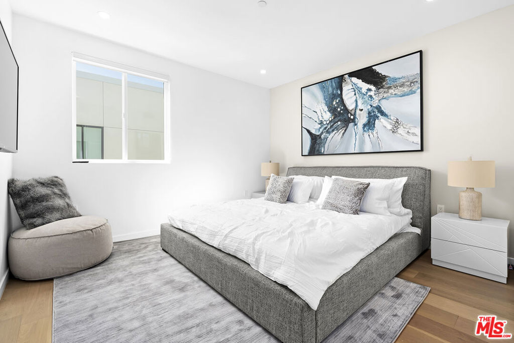 Available Now (can be delivered with current furnishings). Front unit that feels like a private and gated home!… This thoughtfully designed luxury townhome has no shared walls and features a private rooftop, open floor plan, and luxurious finishes. A state of the art MITON kitchen is equipped with LG stainless steel appliances, eat-in island, and opens up to spacious living/dining areas. The private rooftop terrace offers views of the Hollywood Hills, and is the perfect escape to watch TV, BBQ, or relax after a long day. Natural light and ample closet space are prevalent throughout. Additional highlights include: Washer/Dryer, private 2 car garage with direct access, EV Charging ready, gated driveway, wood flooring, surround sound, plus easy access to shopping, restaurants, and grocery stores in West Hollywood, Melrose District, and Hancock Park. Please note, photos may be of the similar model unit and not of the exact unit.
