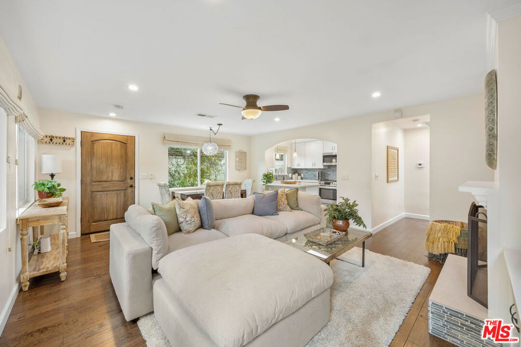 Tucked privately behind the front residence, this 2BD/2BA home offers 1,200 SF of thoughtfully designed living. Bright interiors and a clean, modern aesthetic set the tone, with stainless steel appliances and a fireplace adding warmth to the main living space. Front and backyard patios create easy indoor-outdoor flow and a sense of retreat. Permitted street parking available. Offered fully furnished. Quiet north-of-Wilshire location just moments from Montana Ave and the Brentwood Country Mart.