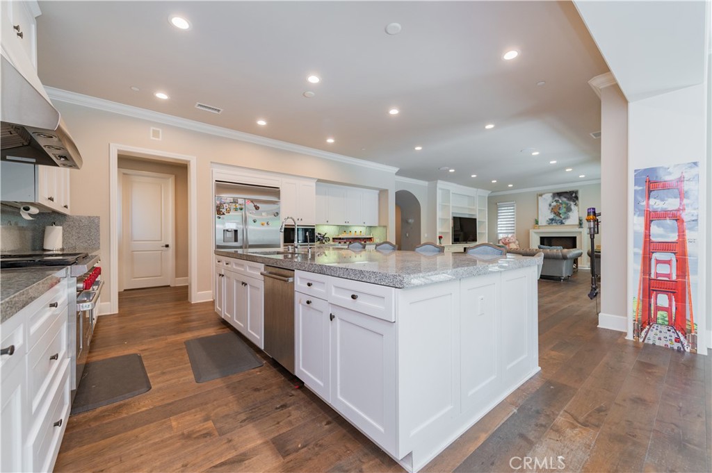 Nestled in the prestigious, guard-gated community of Orchard Hills, this stunning 4-bedroom, 4.5-bath estate offers nearly 4,800 sq ft of refined living space. Built in 2015, the home blends timeless architecture with modern elegance, featuring an expansive open-concept floor plan, soaring ceilings, and designer finishes throughout. A chef’s dream kitchen boasts premium stainless steel appliances, a large center island, walk-in pantry, and custom cabinetry, flowing seamlessly into the spacious great room with a cozy fireplace–perfect for gatherings. Each bedroom is generously sized with en-suite baths, while the luxurious primary suite offers a spa-like bathroom and oversized walk-in closet. Additional highlights include a loft, formal dining room, in-unit laundry, and abundant natural light. Outside, enjoy beautifully landscaped grounds and a private patio ideal for outdoor dining. The home includes an attached 2-car garage and is part of a vibrant community with resort-style amenities such as pools, parks, and scenic trails. Located within the highly acclaimed Orchard Hills School and Beckman High School nearby.
