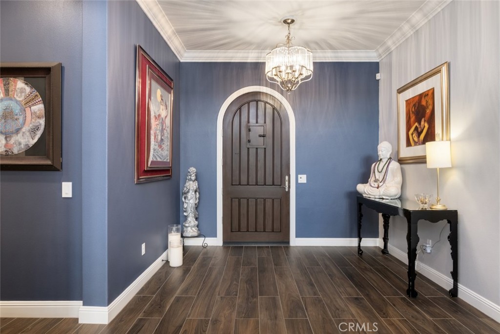Situated on a prime lot in the prestigious Canyon Oaks community in Chatsworth, this extraordinary estate blends cutting edge design, craftsmanship, and luxury living. Amazing curb appeal with conscientious drought tolerant landscaping, graceful fountain, and aesthetic touches like shutters and Juliet balconies, creating a lovely, Mediterranean feel. Designed to impress, the home offers an open, flowing, floor plan and a contemporary aesthetic complimented by rich, sumptuous touches and modern convenience, enhanced by soaring ceilings, abundant natural light, radiant-heated porcelain floors, automated blinds, and motion-sensor lighting throughout. Move seamlessly between living and entertaining spaces with dramatic two-story living room with clerestory windows and floor-to-ceiling sheers, convenient office space with custom built-ins, formal dining space open to views of the yard, and a spectacular showpiece of a kitchen with enormous central island with breakfast bar seating, dedicated pantry, Sub-Zero and KitchenAid appliances, ceiling-height cabinetry with custom glass tops. A private suite downstairs offers a large walk-in closet and en-suite ¾ bath is perfect for guests or creating a home office space. Upstairs is a large secondary living space that makes a perfect lounge or playroom, a convenient laundry room, three good-sized bedrooms with abundant natural light and a truly luxurious primary suite with full ensuite bath boasting separate shower and soaking tub. Outside, embrace the best of resort style living with a truly spectacular yard, starting with the indoor/outdoor appeal of a California room and including a 7-ft, 800-lb Buddha feature. The backyard sanctuary is an entertainer’s dream, with a fully equipped outdoor kitchen, professional misting system, engineered perimeter drainage, a sunken social pit with dual 5-ft fire features, and a fully electric pool with light and electronic sterilization and dramatic raised fire/water bowls, as well as mature Meyer lemon, tangerine, and lime trees. Additional features include a Lorex security system with one month of recordings, whole-home water filtration, 3-car garage with overhead storage and a premium insulated, wind-rated garage door. The home is well situated near shopping, dining, entertainment, including the Vinyard, and major transportation thoroughfares. Don’t let this opportunity to own an exceptionally appointed luxury estate in one of Chatsworth’s most exclusive enclaves.