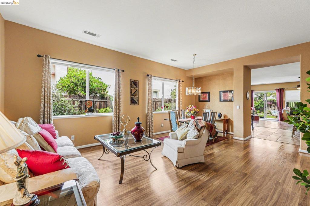 Welcome to this beautifully maintained single-story home offering 3 bedrooms, 2 baths, and 2,142 sq ft of comfortable living space. The open-concept floor plan features a modern kitchen with a large center island, granite countertops, and ample cabinetry—perfect for both everyday living and entertaining. Freshly installed carpet enhances the bedrooms, while the spacious layout provides flexibility for a variety of lifestyles. Step outside to enjoy beautifully landscaped front and rear yards, including new sod in the front for great curb appeal. Situated on a 6,311 sq ft lot with open space currently behind the home, this property offers a sense of privacy while still being close to local amenities. A 2-car attached garage completes this move-in ready opportunity.