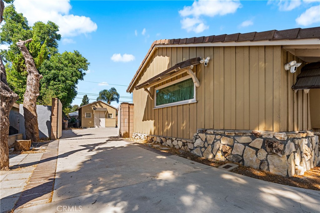 Nestled on a private, beautifully landscaped 1/3-acre lot, this 4 bed 3 bath custom-built rustic home offers the perfect blend of charm, functionality, and comfort. A circular driveway provides ample parking, w/RV access for convenience and privacy. Step through a one-of-a-kind front door into a formal entry, leading to a sun-filled living room featuring a stone fireplace, wood-beamed ceiling, and a wall of windows. Also included is a mounted 86” LG UHD TV with AI ThinQ. The dining room opens to a remodeled gourmet kitchen, featuring a used brick fireplace, built-ins, and elegant Bamboo Hardwood floors extending through the entry, dining room, kitchen, utility room, and hallway. The kitchen is a chef’s dream, boasting double ovens, a 5-burner stove, Kenmore built in refrigerator, self-closing drawers and cabinets, Quartz countertops, an oversized island w/ a large utility sink and breakfast bar. A separate laundry/utility offers generous storage and access to a convenient 3/4 bath. All bedrooms are spacious and well-appointed. The primary bedroom includes two closets, one walk in, a custom ceiling fan, and a remodeled bathroom w/dual sinks and tiled shower. Three additional bedrooms and a remodeled hallway bathroom includes double sinks, a tub/shower combination, and a Bluetooth speaker system. Upgrades include double-pane windows, complete replacement 5-ton high-efficiency HVAC system, Ring camera System, custom oversized hallway linen closet. Step outside to an entertainer’s paradise. The expansive backyard is designed for gatherings of all sizes, featuring a spacious patio with a wood-burning fire pit, a sparkling newly plastered pool with Baja shelf, automatic pool vacuum, autofill, plumbing for heat, and updated equipment, plus an above-ground hot tub. Lush landscaping ensures both beauty and privacy. Additional outdoor amenities include a permitted detached pool house/workshop, a raised garden area shaded by mature trees, beautiful roses, and 2 fruit-bearing orange trees. For convenience and efficiency, the property is equipped with two electrical panels and two water heaters. Located within walking distance to the highly sought-after Granada Hills Charter High School, as well as shopping and dining options, this incredible home combines privacy, luxury, and accessibility in one exceptional package.