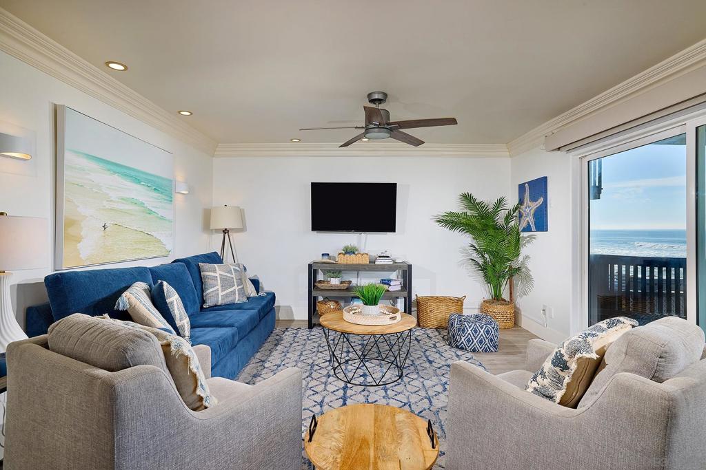 NEWLY REMODELED OCEANFRONT CONDO! This fully furnished 3-bedroom, 3-bathroom condo offers spacious living right on the sand in Oceanside. Immerse yourself in the soothing ocean breezes and the sound of the waves, all from the comfort of your home. Walk to Oceanside’s vibrant new restaurants and shops, or step into your backyard to enjoy the beach. Available now through May 31, 2025.